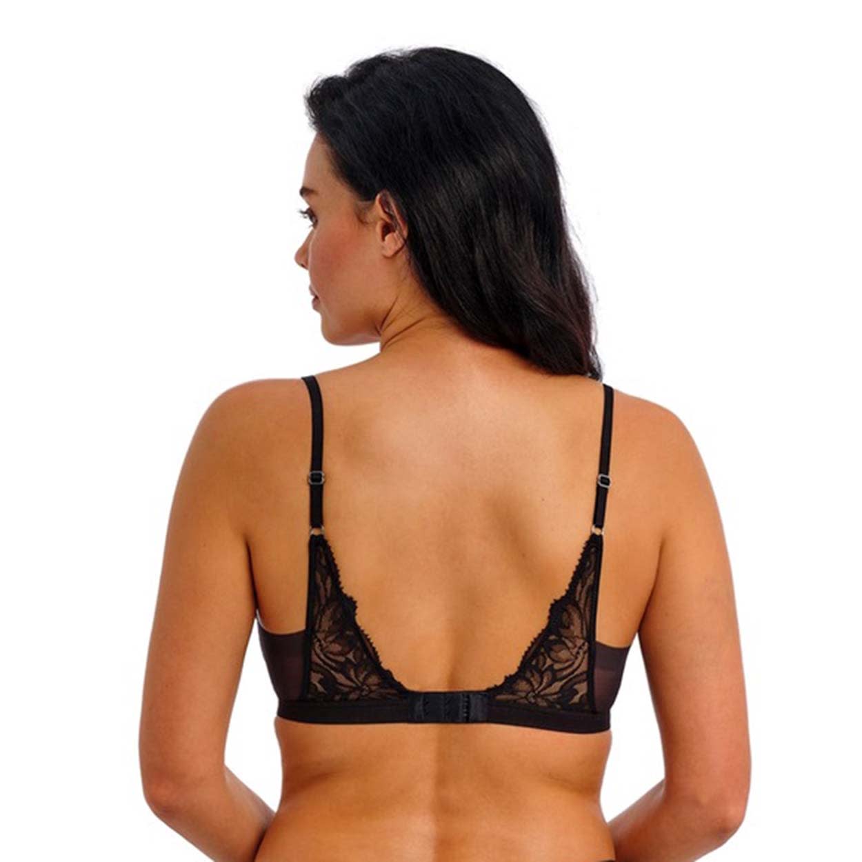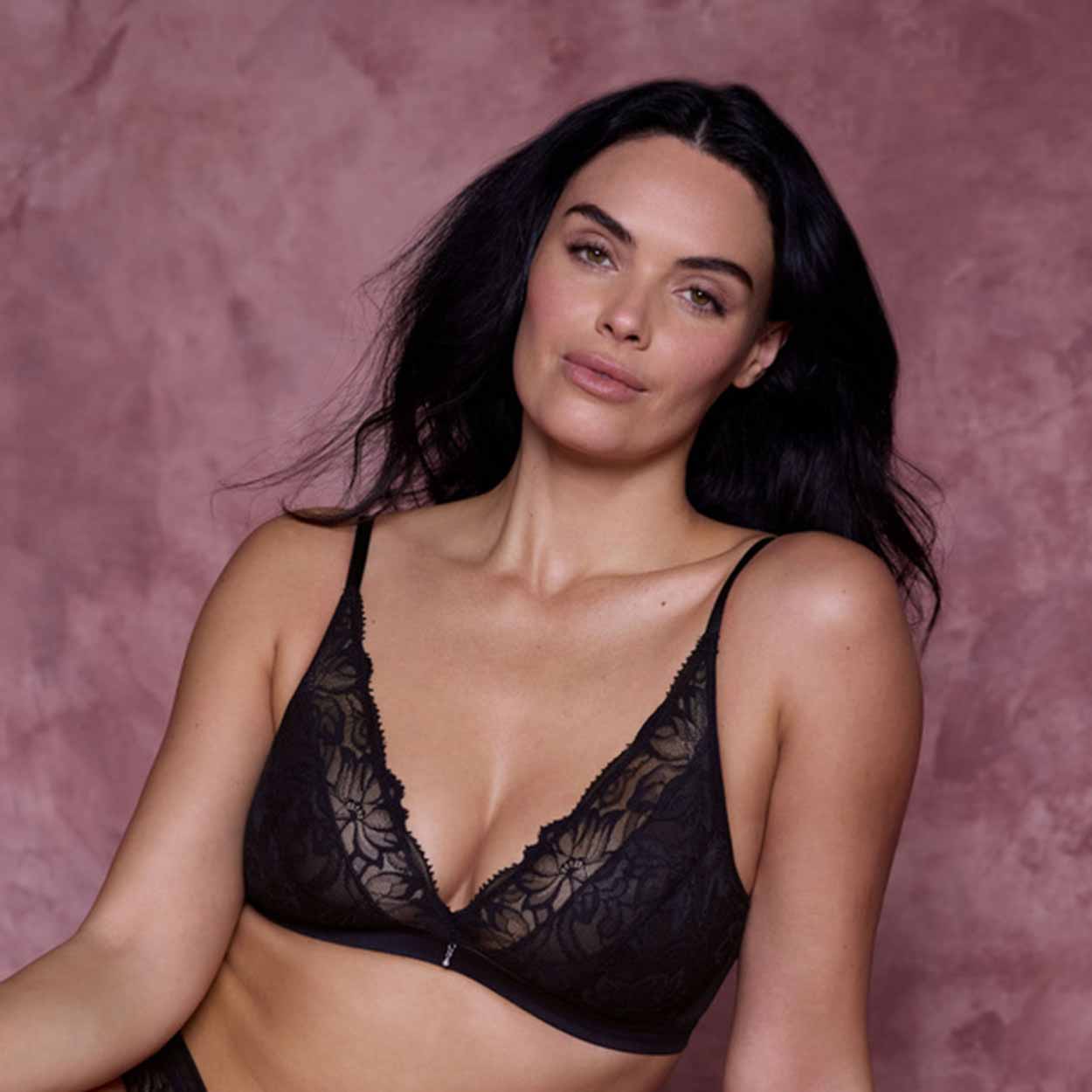 The Abellia Non-Wired Bralette combines beautiful details with light support and flexibility. Its neckline features a scalloped edge, stretch lace with sheer elastic for a flexible fit. The two-section stretch lace cups are lined with fine mesh for added support, and a scalloped stretch lace back detail runs from the shoulder strap down to the underband for a cohesive look. An underband elastic is covered with stretch mesh to keep the bralette comfortably in place, while a side wing insert features ultra-smooth selvedge mesh at the top edge. A soft-touch hook and eye adjustment and a delicate pearl drop effect trim at the center front complete this elegant design.