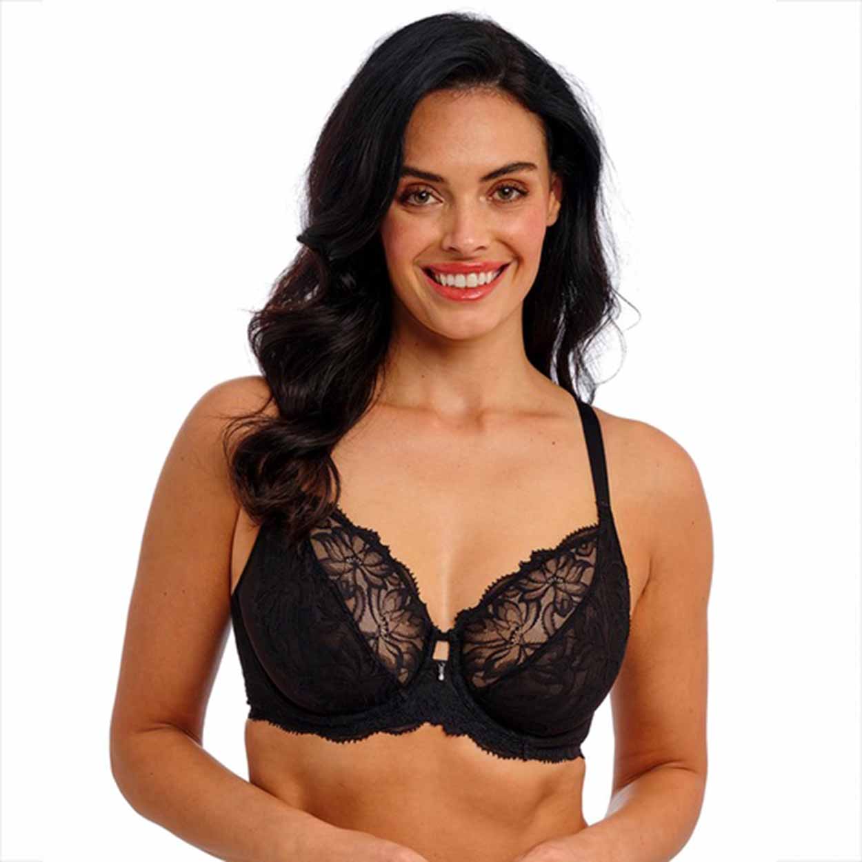 The Abellia Underwire Bra is designed to provide a natural shape and optimum support. Its three-section cups feature a stretch lace top cup with sheer elastic along the neckline to maintain fit, while the sheer mesh bottom cup has a beautiful stretch lace overlay. An intricate dropped center front is adorned with stretch lace and a delicate pearl drop effect trim. The lace wing is lined with innovative selvedge stretch mesh for comfort, and a scoop center back ensures the straps stay in place. Underwires vary in strength across sizes to give you the perfect level of support and shape, and you can customize your fit with fully adjustable stretch straps and a soft-touch hook-and-eye adjustment.