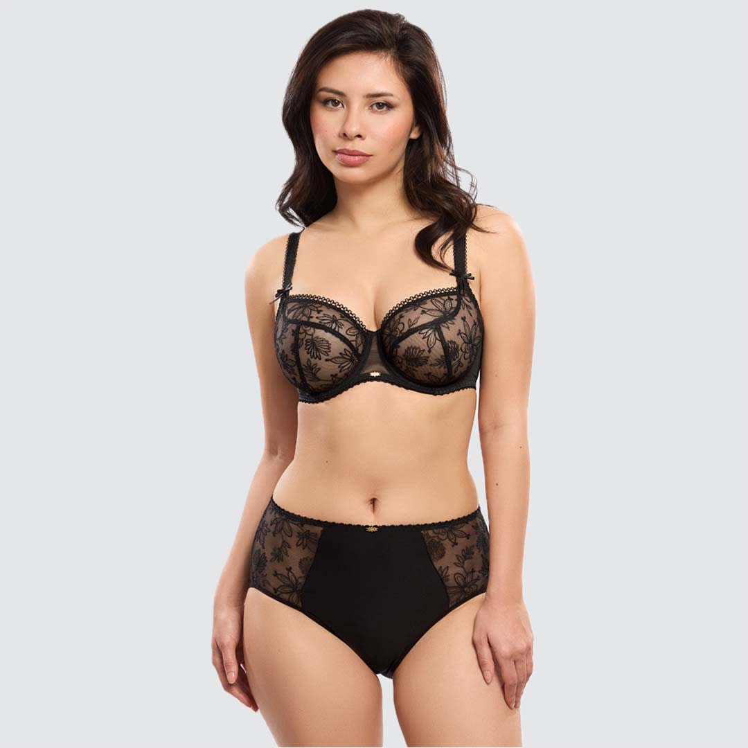 The Alix Panties are high-waisted full briefs that offer a flattering and comfortable fit with a soft fabric front and back, accented by delicate embroidered inserts at the sides. The peachy-soft opaque mesh back is elastic-free, ensuring an invisible finish under clothing. A decorative jewel at the front adds a refined, feminine touch to this beautifully crafted design.