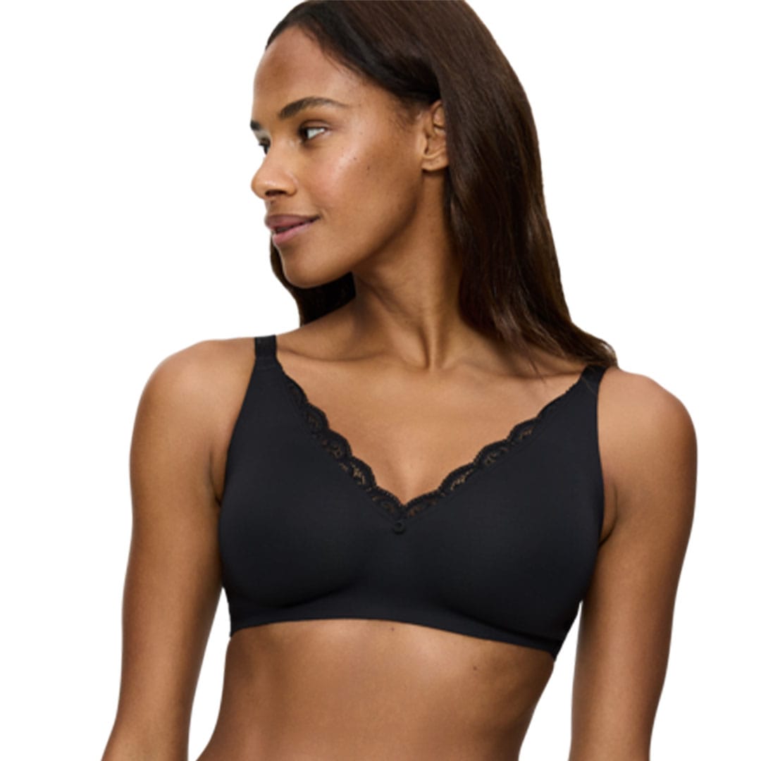 The design of Amourette Wirefree Minimiser Bra visually reduces the bust by up to one cup size while offering a smooth, virtually seamless finish with bonded and laminated parts. Featuring soft new Jacquard elastic shoulder straps, comfortable V-slides, and a gentle 3-row hook-and-eye closure, it delivers all-day support without compromising comfort.