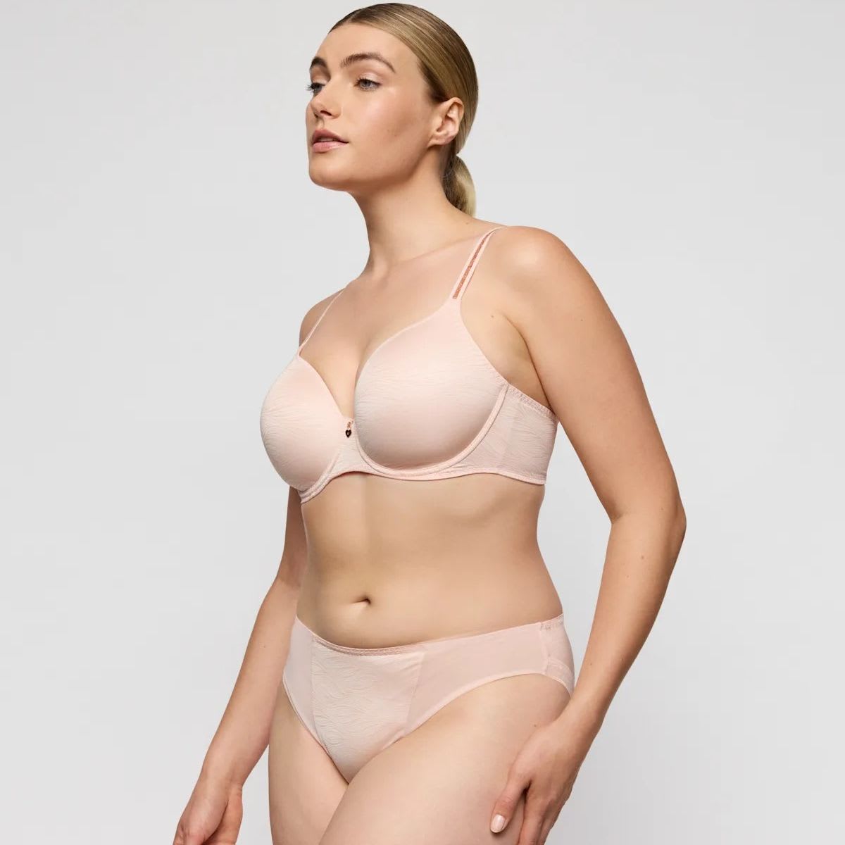 Comfy padded wired bra. Stylish non-transparent design. Stylish straps to hide or show. In pale pink with glitter details.
