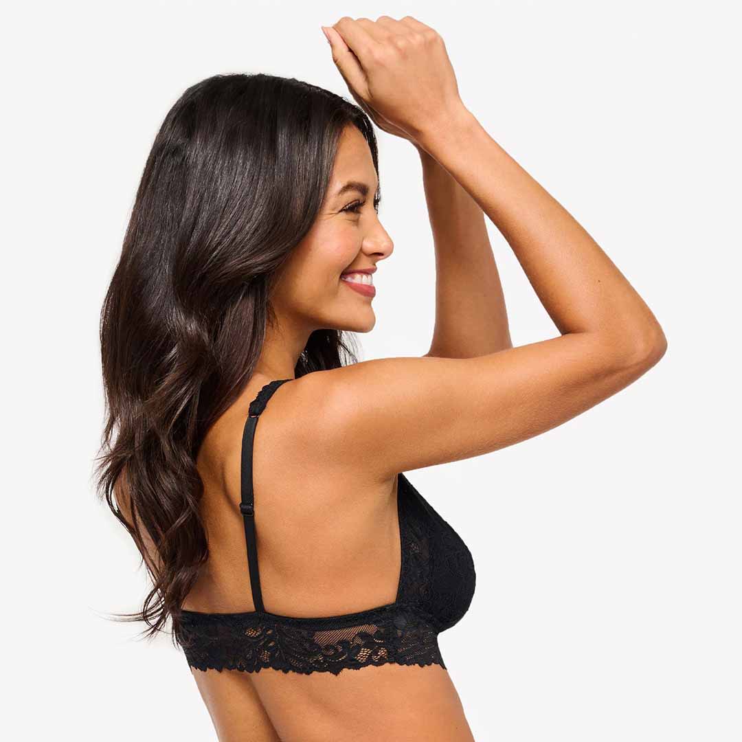 Carmela Plunge Bralette is a wireless plunge-front bralette featuring tall, triangle-shaped lined cups for a natural, flattering shape. Designed in an easy pull-on style with adjustable straps for a custom fit. Hand wash only; do not tumble dry.