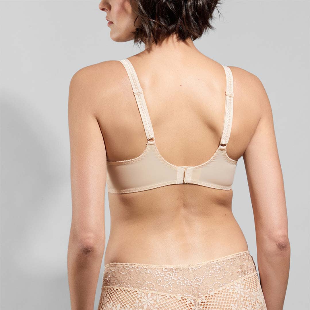 Elevate your lingerie game with Empreinte's Cassiopee range, featuring this full-coverage bra with delicate semi-sheer embroidery for a touch of sophistication. The seamless cups offer a comfortable fit and ensure a smooth appearance under clothes, while the centre gore provides excellent support. The underwire and hook-and-eye closure ensure a secure fit, and the adjustable straps allow for a personalized fit. Complete the look with matching pieces from the Cassiopee range for a fully coordinated ensemble.