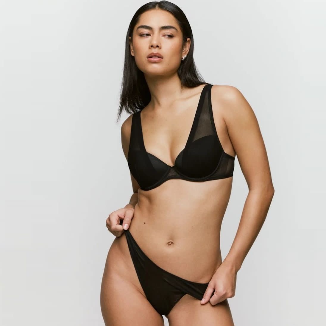 All-day comfort with just the right amount of see-through. Padded wired bra with cleavage. Non-transparent design. Cross the shoulder straps at the back. Mesh straps for a unique effect.