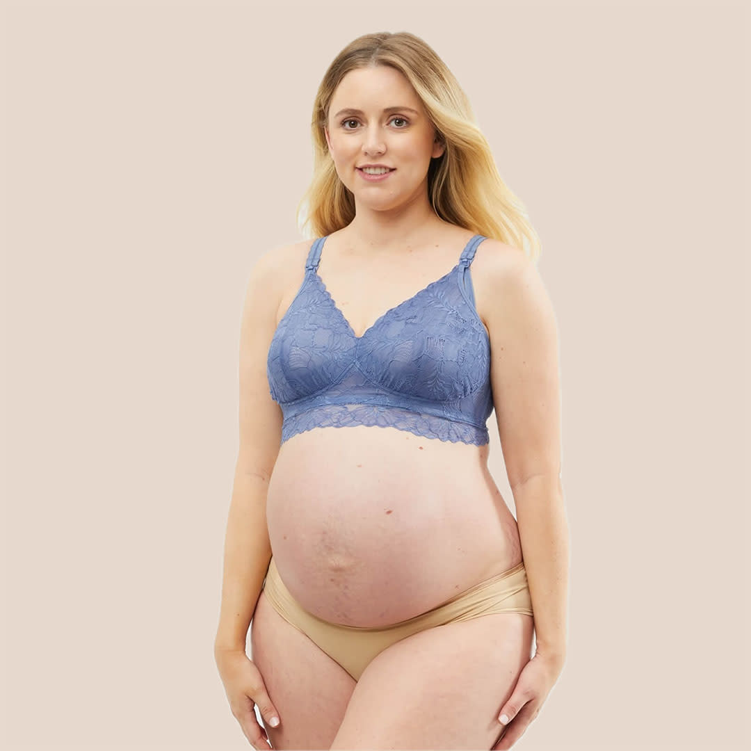 A wire-free Chantilly D-F Maternity & Nursing Bralette featuring soft French-inspired lace, easy drop-down cups, and flexible, supportive design for comfort and growth during motherhood.