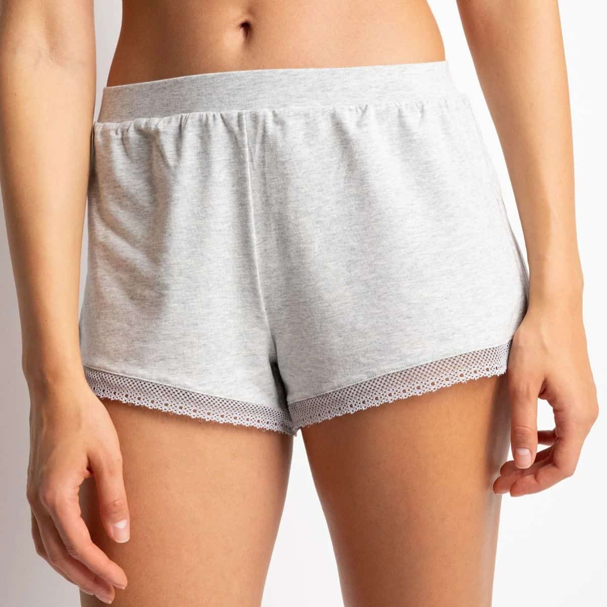 High-waisted mini-shorts in cotton modal. The details of the favourite: Everyday comfort to relax or sleep in style. Crafted from an ultra-soft blend of cotton and modal, embellished with a refined lace trim for a feminine and elegant touch.