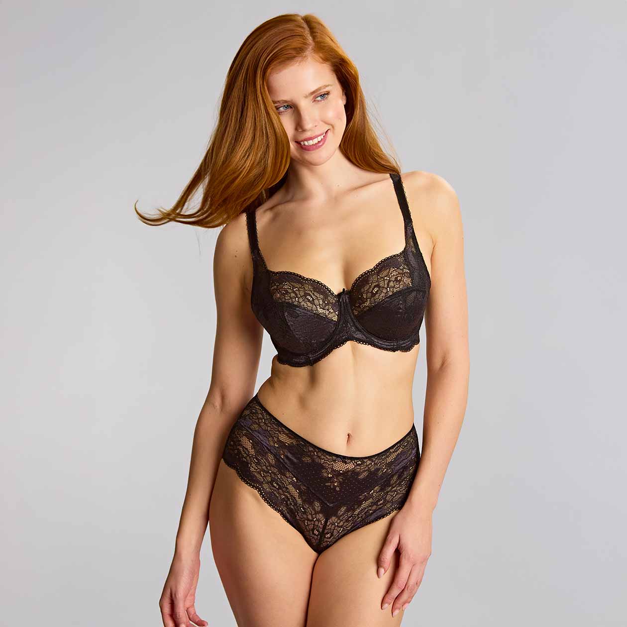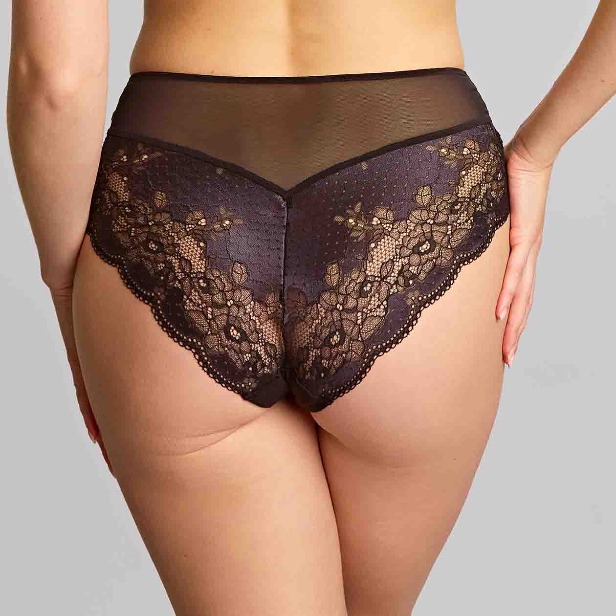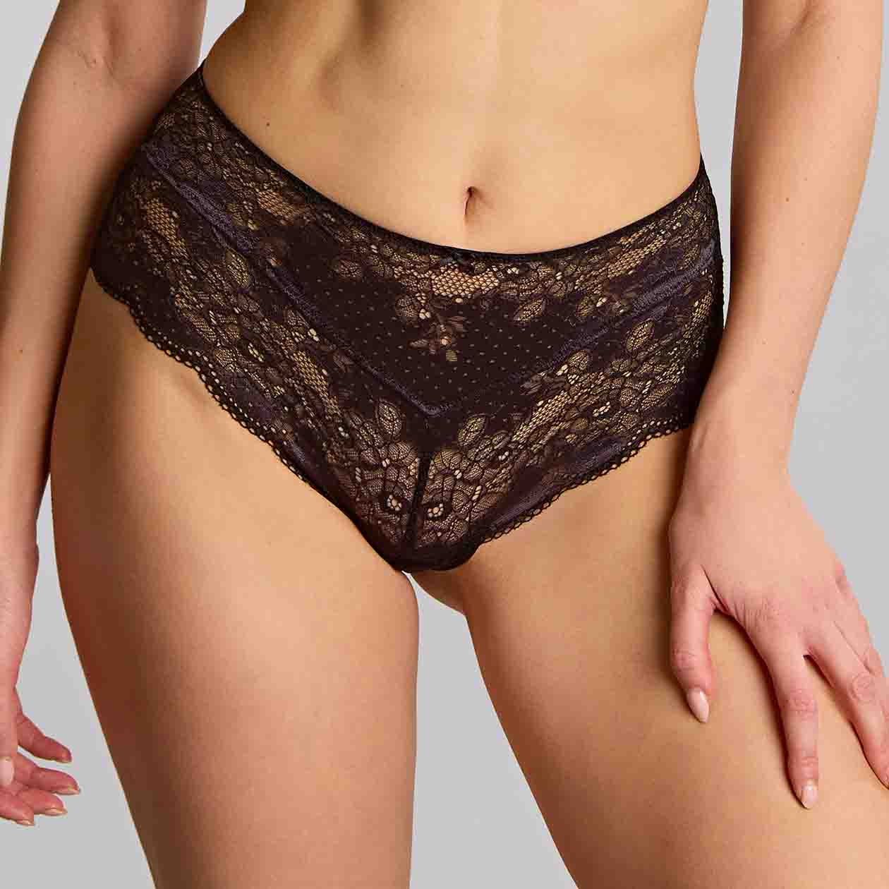 The Clara Deep Brief, a perfect pairing of sophistication and comfort. This stunning piece combines a delightful dusky blue with delicate ivory lace, creating a timeless and elegant look that complements any wardrobe.