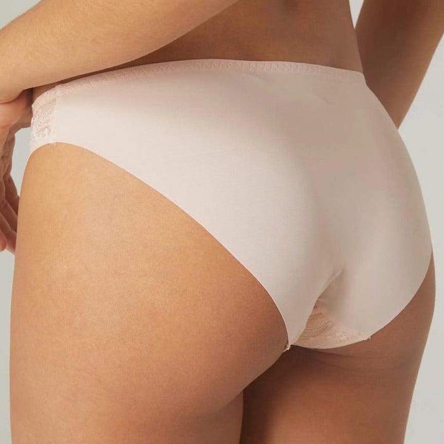 Elegant and effortless for the win. This must-have bikini brief has the prettiest French lace in the front, and soft and seamless microfiber in the back.
