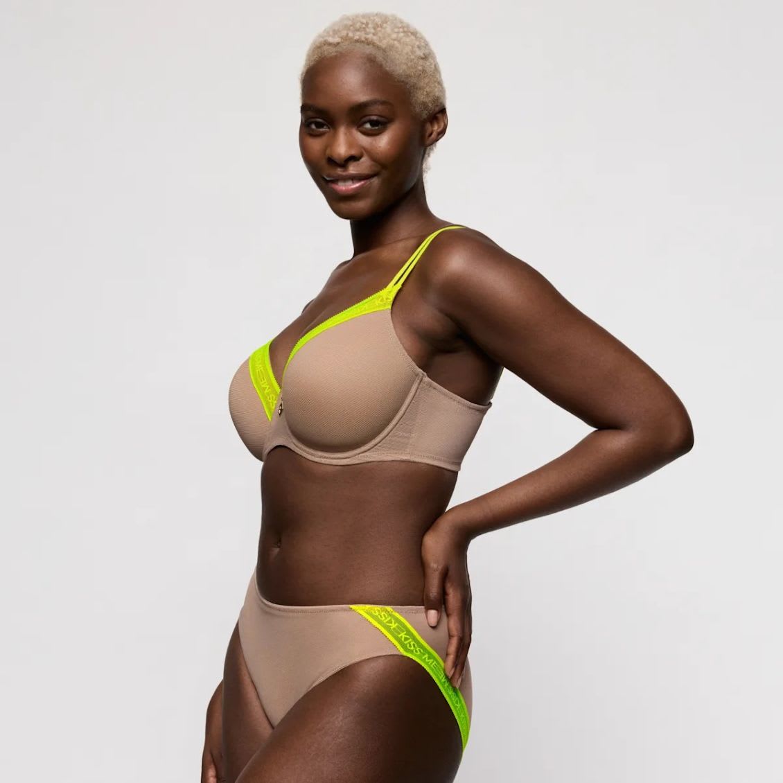 Sexy lingerie in breezy mesh – with a message. Comfy padded wired bra. Stylish non-transparent design. Stylish straps to hide or show.