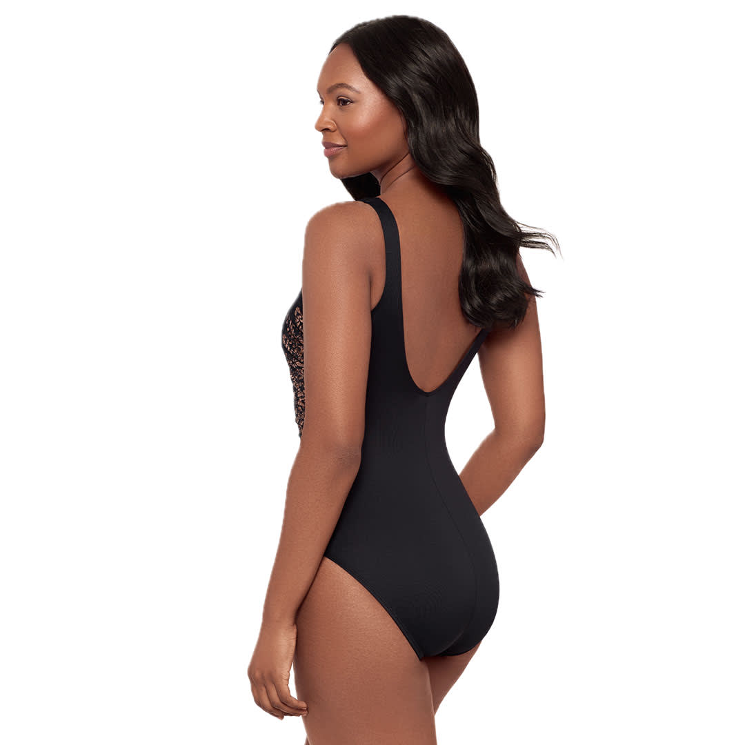 The ultra-flattering Costa D'Oro Temptress Plunge Neck Shaping Swimsuit uses powerful Miratex® fabric, waist-enhancing ruching, and a plunging neckline to sculpt instant curves while providing firm yet comfortable tummy control.