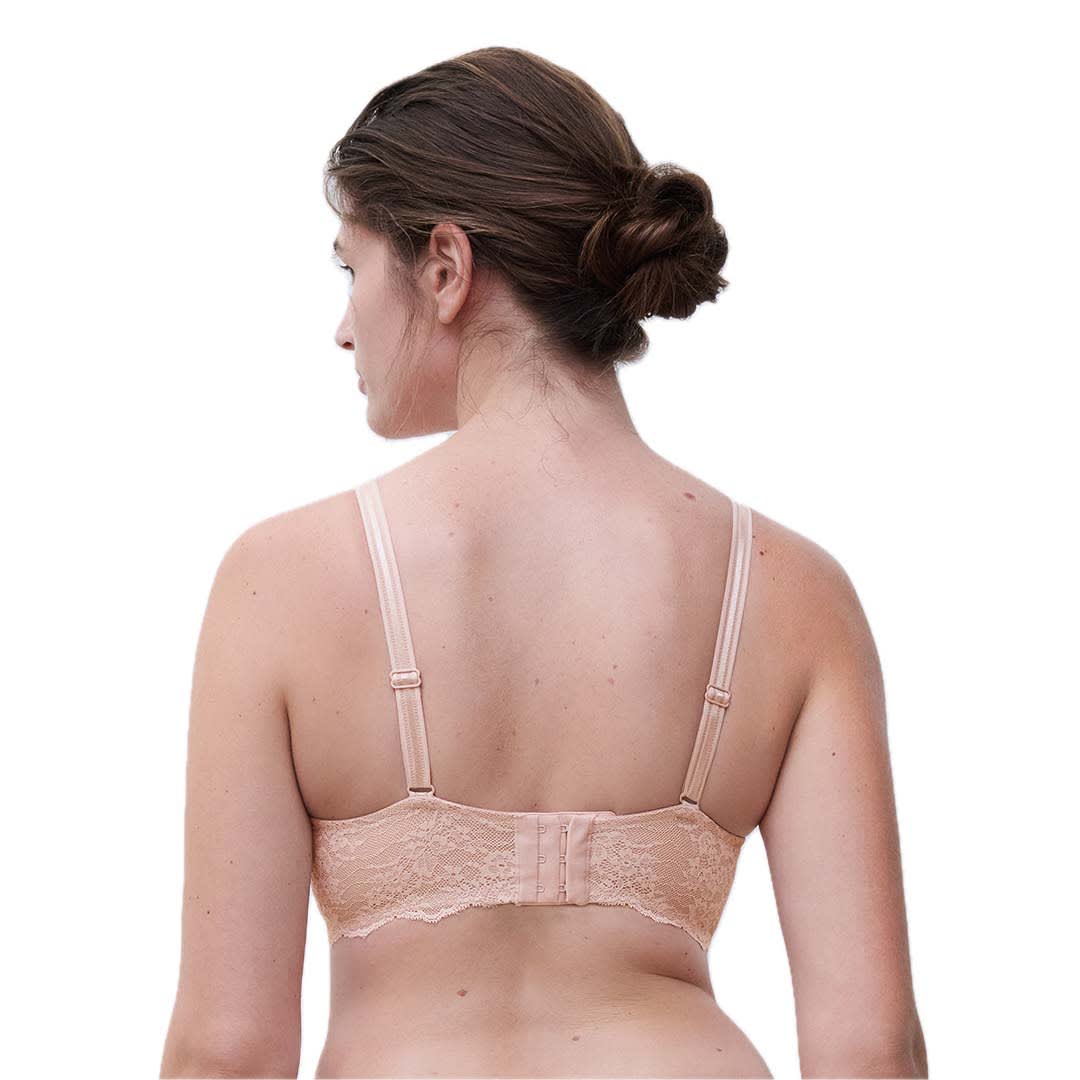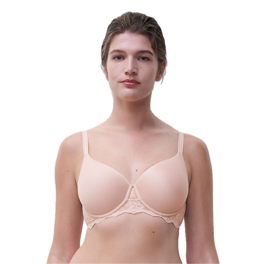 The Crush Covering Memory Bra features adaptive memory foam padding that moulds to your shape, combining opaque knit with floral lace for a refined look. It has fully adjustable textured straps, a straight elastic-tulle back, is OEKO-TEX® Standard 100 certified, and is designed in France.