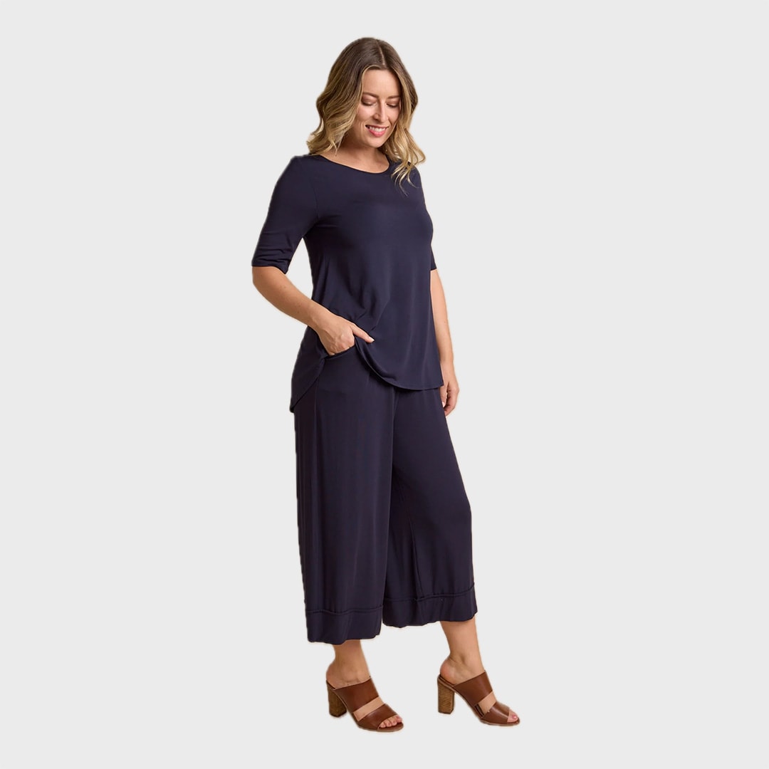 This wide-leg culotte pant is a versatile essential for both work and weekend wear. Featuring a panel-detailed hem for a stylish touch, its straight, flowing silhouette flatters a variety of body shapes — making Cullotte Resort Pant a perfect addition to your holiday wardrobe.