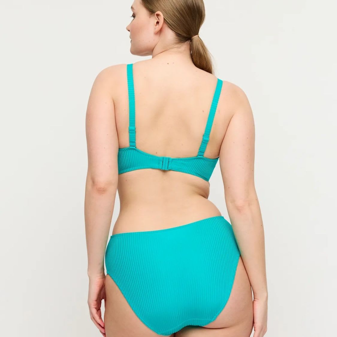 Trendy ribbed look with sun-catching details. Full cup top that lifts your bosom with confidence.