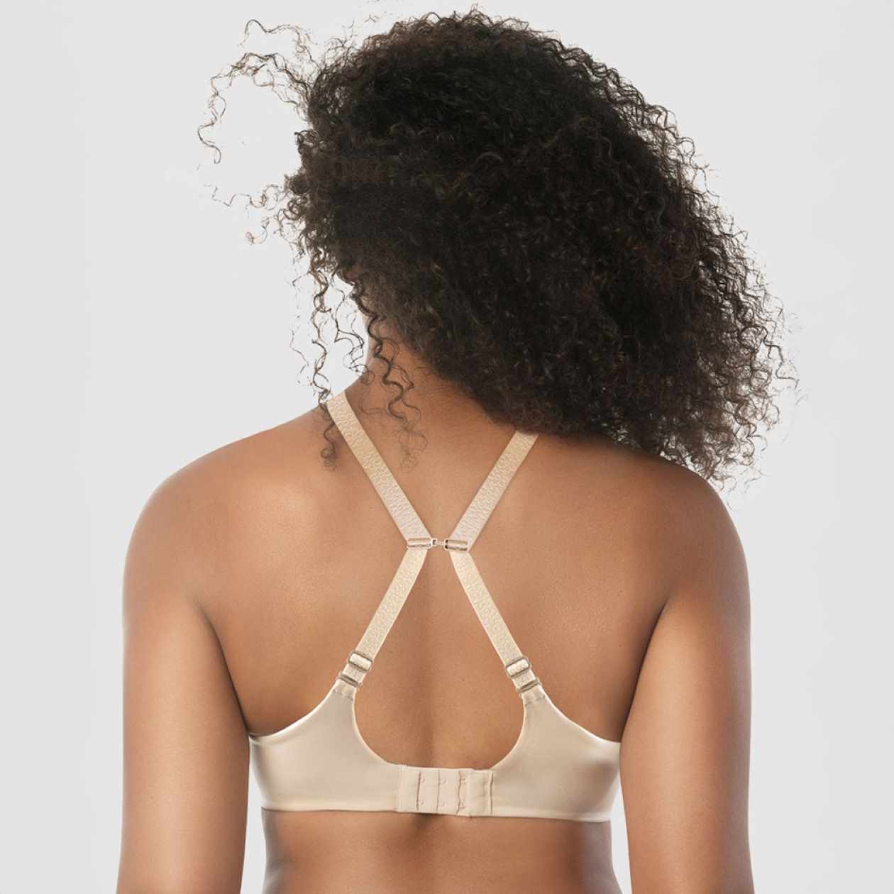 The Elise Convertible Moulded T-Shirt Bra is the ultimate everyday essential for fuller busts, featuring smooth moulded contour cups that provide a sleek and seamless silhouette under any outfit. For maximum versatility, it includes adjustable multiway straps, subtly decorated with a charming daisy pattern—that can be worn five different ways, including as a crossback. A soft microfibre band with enclosed elastic ensures exceptional all-day comfort, while an elegant bow and charm detail adds a pretty finishing touch to this practical yet stylish wardrobe staple.