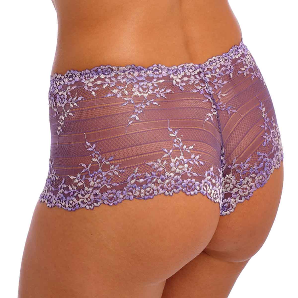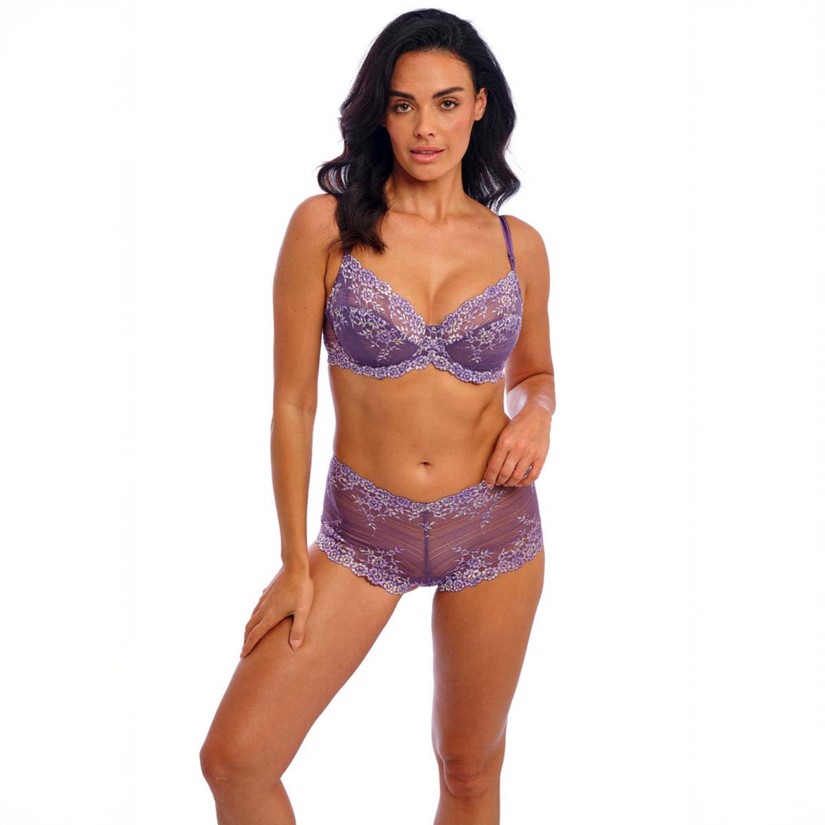 This Embrace Lace shorty from Wacoal is simply styled with dainty lace & contrasting floral embroidery. The front & rear panels are semi-sheer keeping it feminine, playful & a little bit sexy. The elasticated waist is adorned with floral patterned edging.