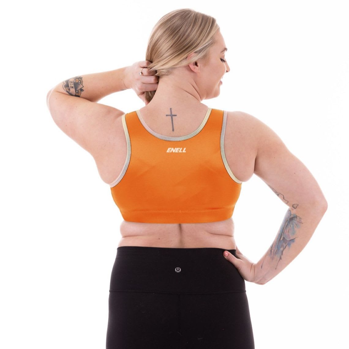 The ENELL sports bra is one of those bras that has Raving Fans and for good reason. It’s amazing – but don’t take my word for it...ENELLs biggest fans include Oprah Winfrey AND plus-sized supermodel Ashley Graham (who had a barbie doll modelled after her, I know, wow). It doesn’t look or fit like any other sports bra and it has its own unique size system. Please look at the chart image to determine your size.