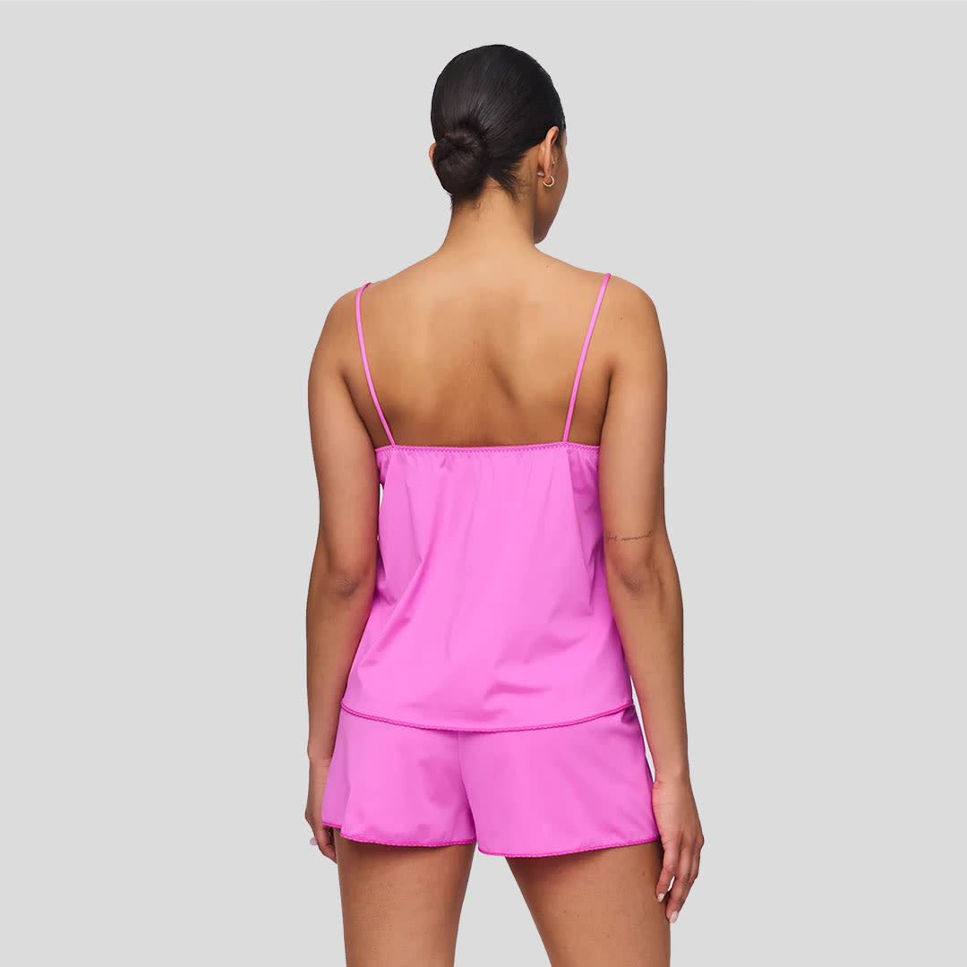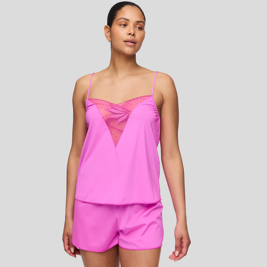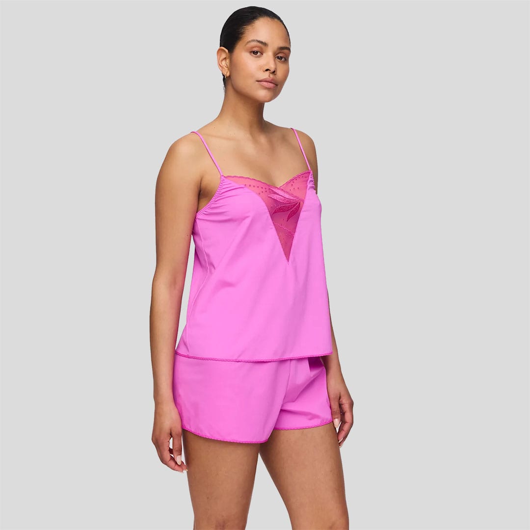 Stylish by night: Opt for an Etoile Nightwear retro set with a singlet and mini shorts featuring asymmetrical embroidery.