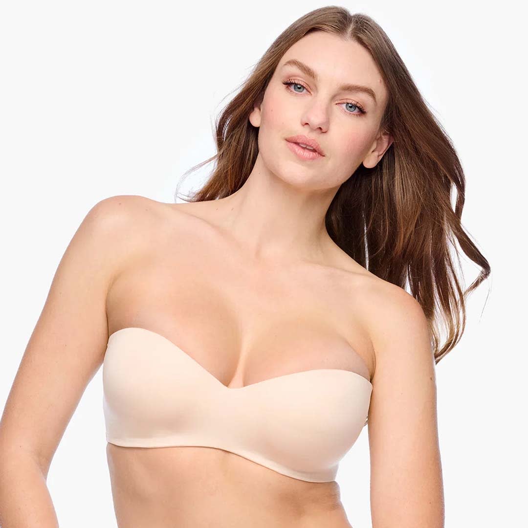 The Evolution Strapless Bra features a smooth molded microfiber finish for a flawless silhouette, silicone elastics for secure support, removable adjustable straps for versatility, and a classic hook-and-eye back closure for confident, all-day wear.