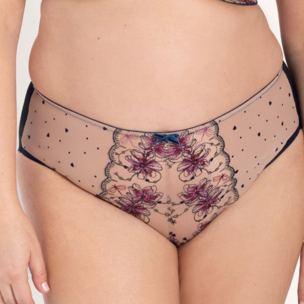 The briefs are made of embroidery. Seamless finish at the bottom. Decorative teardrop on the back.
