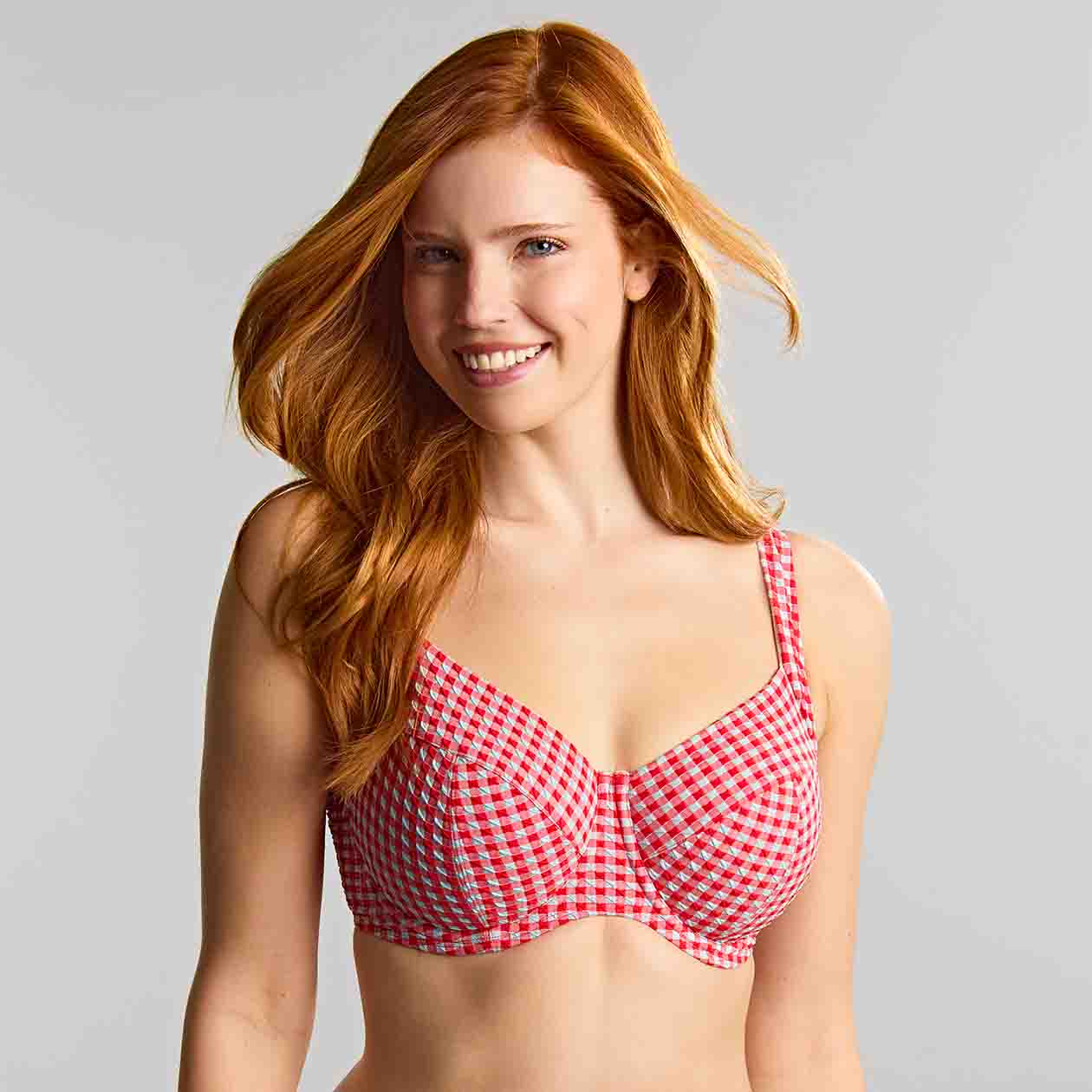 Head to the beach with the Panache Gingham Full Cup Bikini Top for a stylish look. This gorgeous full bikini top offers non-padded cups with underwired construction for excellent support and a flattering shape. You'll also love the beautiful gingham pattern, perfect for standing out from the crowd. An adjustable clip fastening and shoulder straps complete the top for an easy-to-adjust fit.