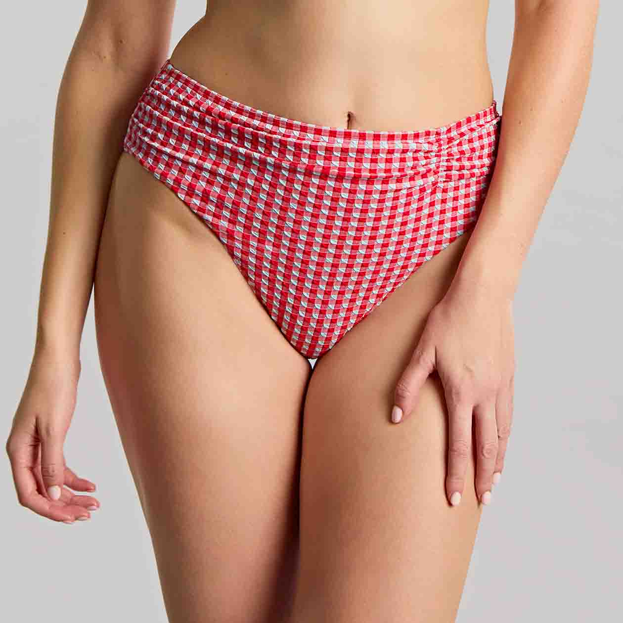 Complete your nautical chic look with the Gingham Gather Bikini Brief. This super comfortable bikini brief is gathered at the sides for a flattering fit.