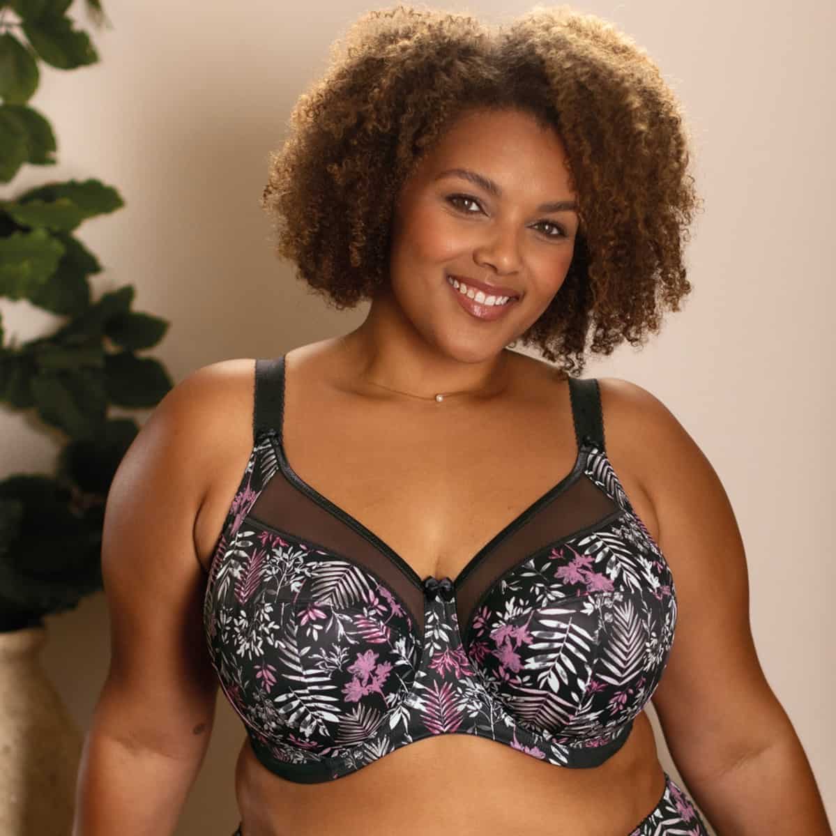 The Goddess Kayla Underwired Banded Bra returns in a stylish print with a semi-sheer top cup for a lighter look. Silky soft cups with a signature V plunge offer great support and uplift, for a flattering fit.