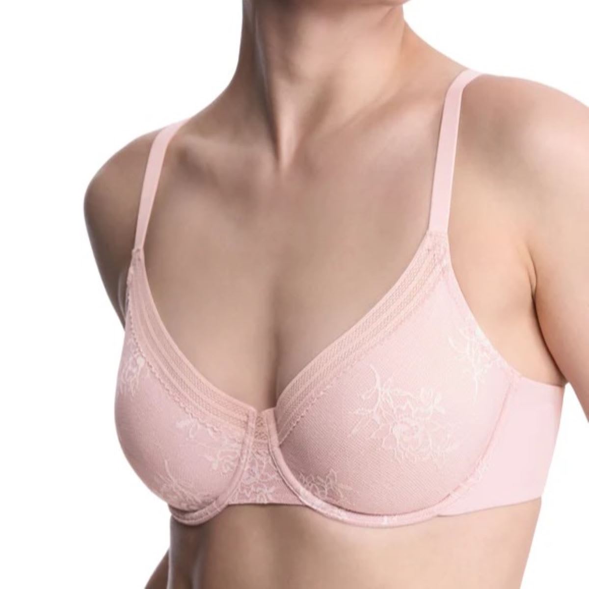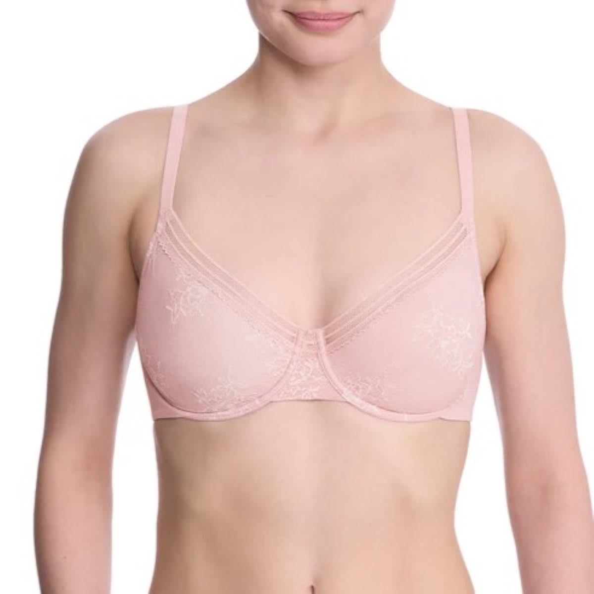 Luxurious, feminine, and practical enough for everyday wear, this wired stretch lace bra is crafted with innovative LYCRA® ADAPTIV flat floral lace that feels soft, adapts to your body, and disappears under clothing. The unpadded cups feature a smooth lining for natural shaping, while lace-inspired elastic trim ensures a perfectly contoured fit. A tall, two-ply smoothing back provides comfortable support, and the adjustable shoulder straps are finished with signature gold-tone hardware. Designed with a versatile scoop neckline and certified to OEKO-TEX® Standard 100, this bra is free from harmful chemicals and beautifully balanced between elegance and comfort.
