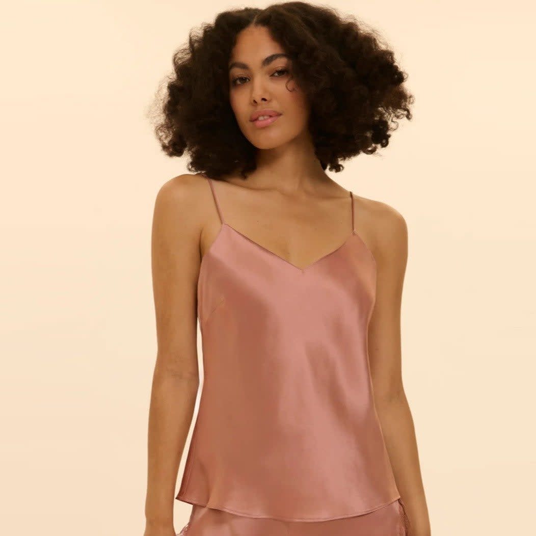 Camisole crafted with 100% silk. Slight flared cut that for a relaxed, flattering fit. V-neckline with a straight back. Slim, adjustable silk straps. Fine hem finishes.