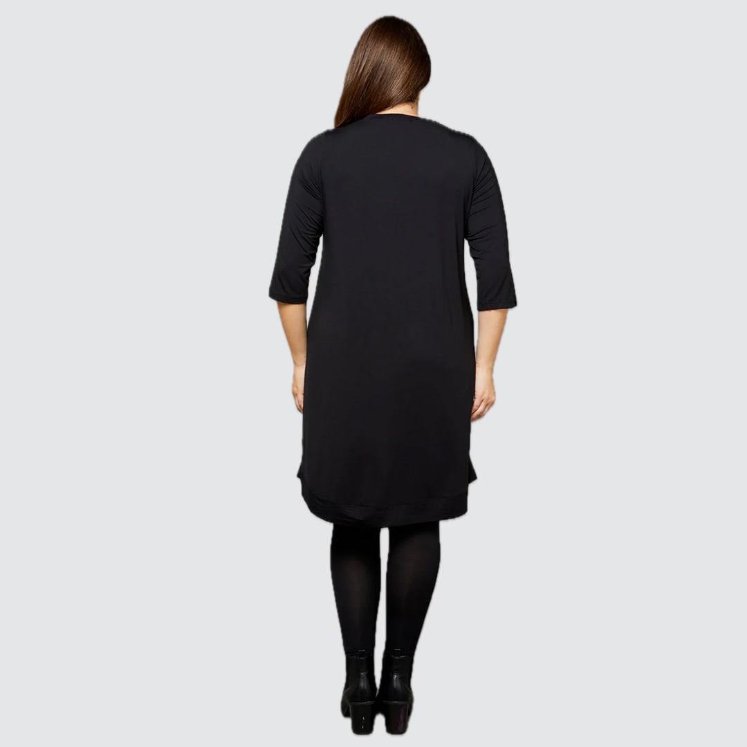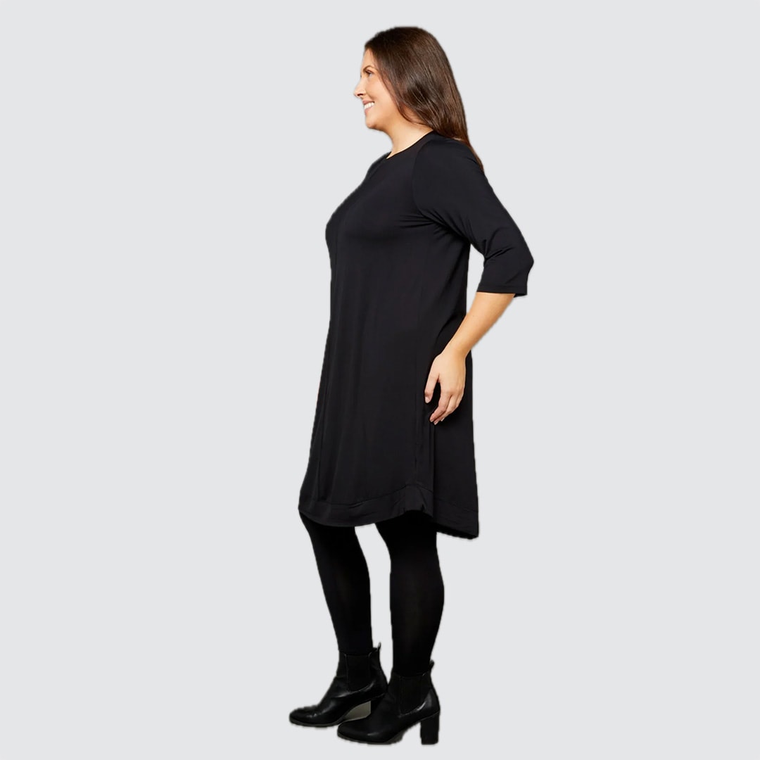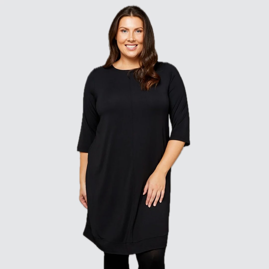 Featuring a curved hemline and a below-knee finish for ease and coverage, this piece offers 7/8 sleeves for versatile, trans-seasonal wear. Travel-ready and effortlessly layered over leggings, it showcases a classic crew neckline with a timeless, flattering shape. Luna Aline Dress is crafted from premium Micro Modal Air, it’s buttery soft, breathable, and sustainably made for all-day comfort.