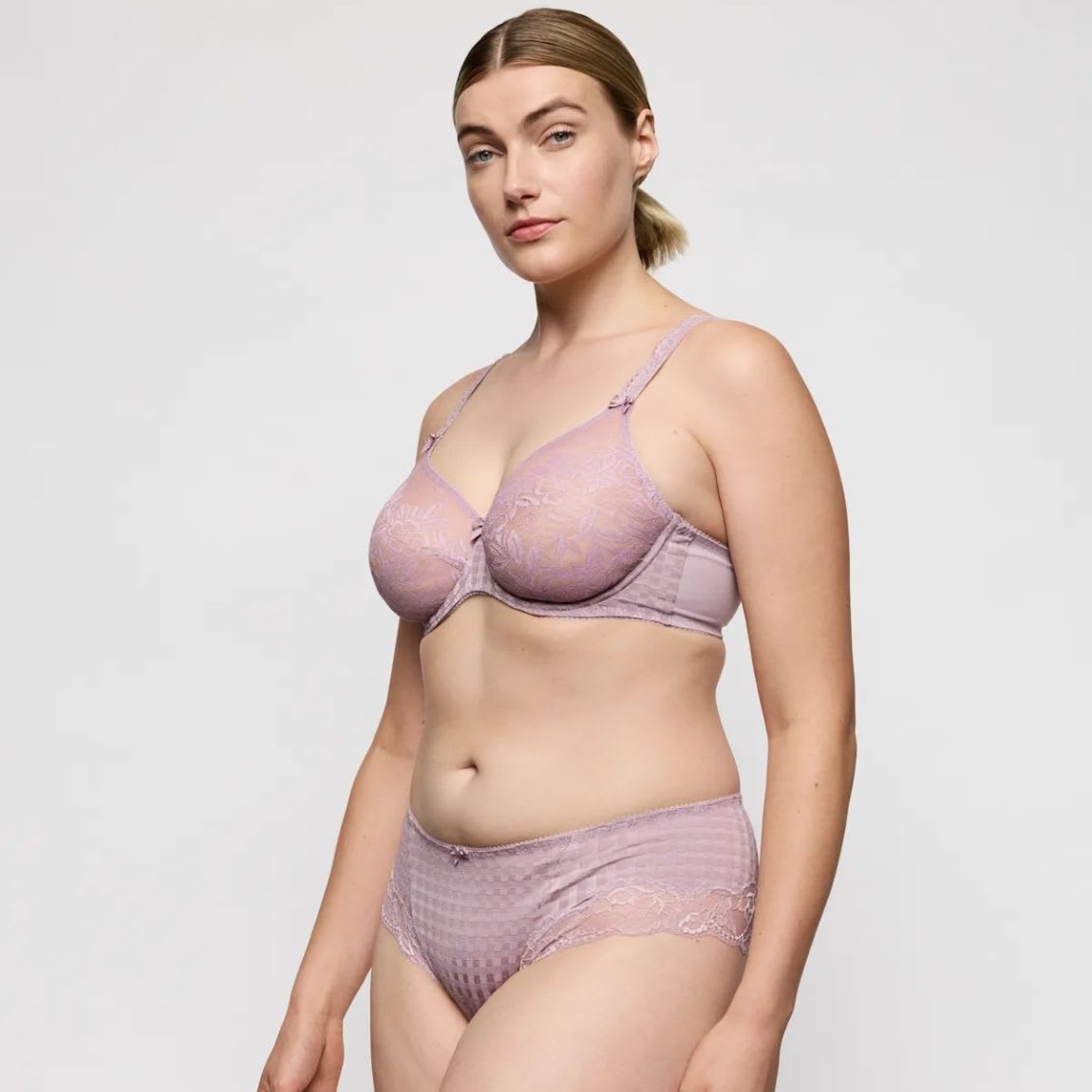 Introducing the Madison Seamless Non Padded Bra, a romantic and supportive sheer bra that combines comfort and trendiness. This exquisite full-cup bra features seamless, heart-shaped cups made from French lace, adorned with a retro floral print. The lace-adorned straps add an extra touch of elegance. This bra is a must-have addition to every lingerie drawer. Experience the perfect blend of airy comfort and captivating style with this delightful lingerie piece.