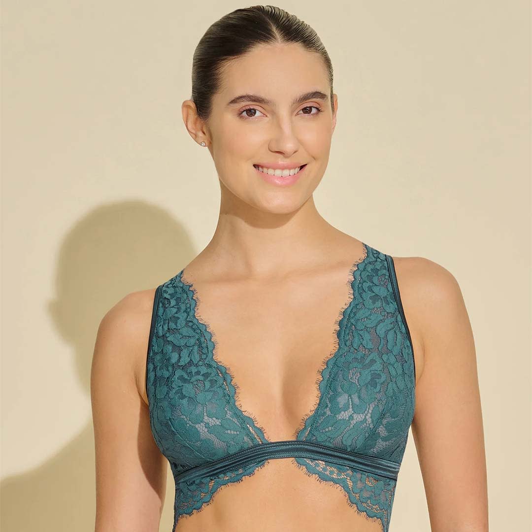 Elevate your lingerie collection with this Magnolia Tall Triangle Wireless Lace Bralette, crafted from romantic scalloped floral eyelash lace and finished with a touch of luxurious satin trim. The satin band below the bust is adorned with intricate lace detailing for an elegant finish. Featuring non-padded, low-plunge tall triangle cups lined with soft mesh, it offers a natural shape and comfortable support. Complete with adjustable straps and a hook-and-eye back closure for a perfect fit. Care: Hand wash only. Do not tumble dry.