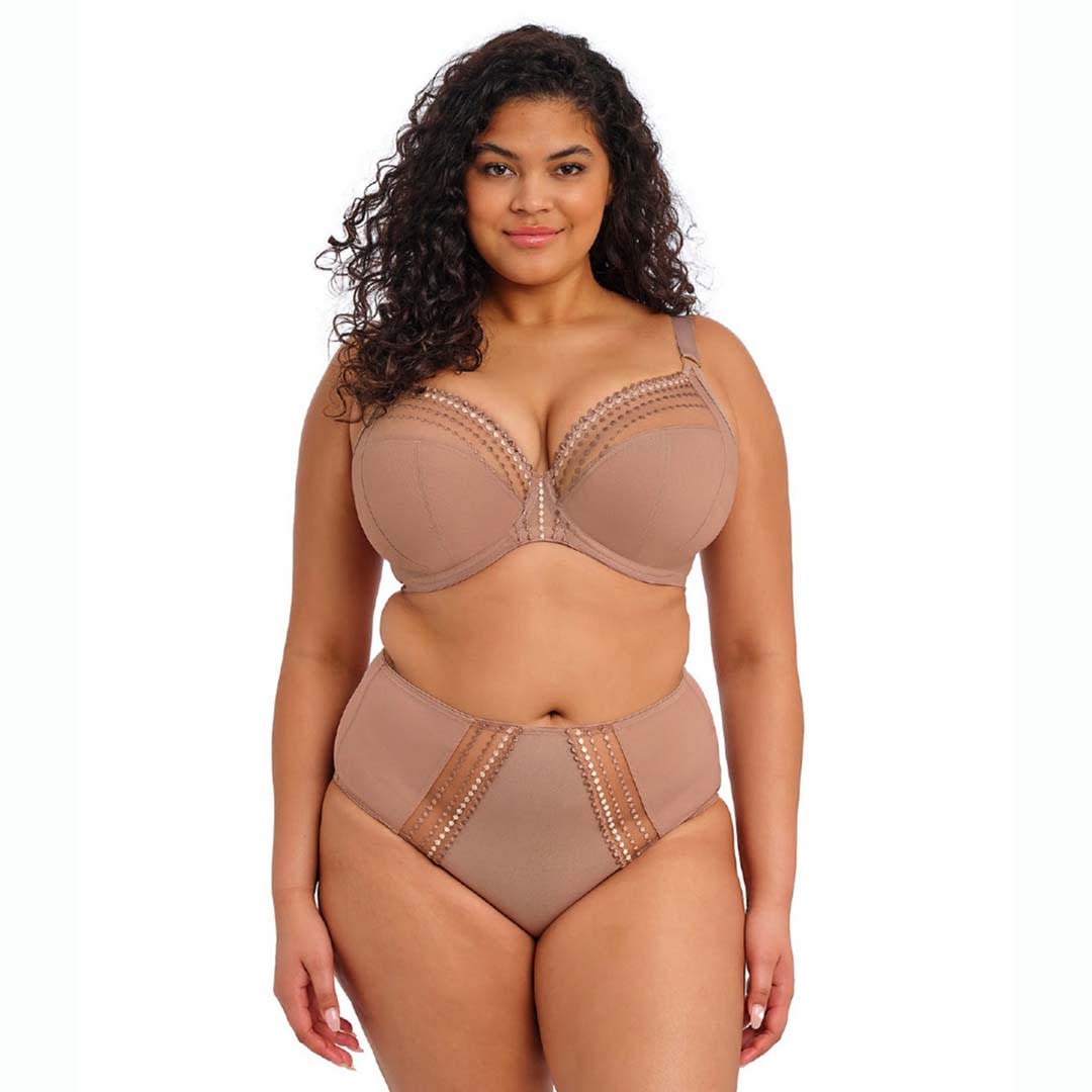 Look gorgeous, feel confident, and get all the support you need with the Matilda plunge bra by Elomi. Matilda accentuates your curves with stunning beaded lace embroidery and opulent silver ring detailing. The easy to adjust J-hook converts it to a versatile racer back style. Perfect to wear under low-cut tops and dresses along with three-section cups with side panels for uplift and separation.