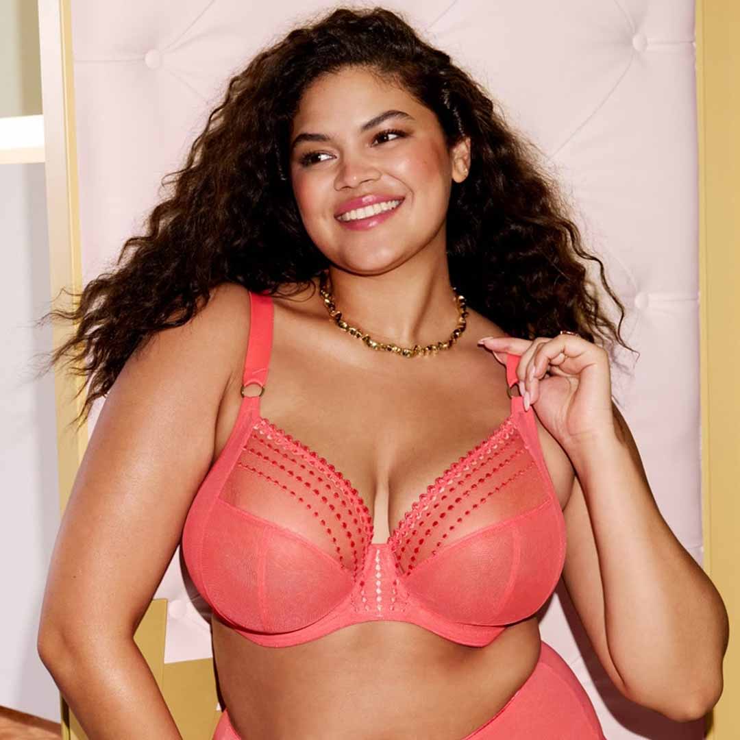 Look gorgeous, feel confident, and get all the support you need with the Matilda plunge bra by Elomi. Matilda accentuates your curves with stunning beaded lace embroidery and opulent silver ring detailing. The easy to adjust J-hook converts it to a versatile racer back style. Perfect to wear under low-cut tops and dresses along with three-section cups with side panels for uplift and separation.