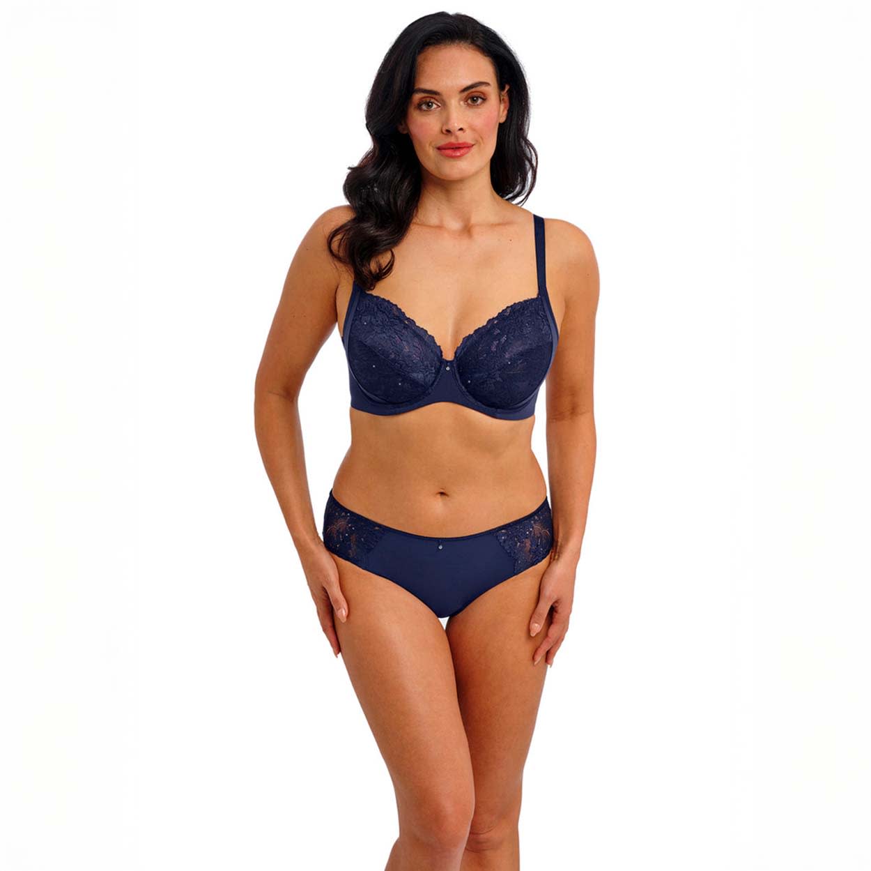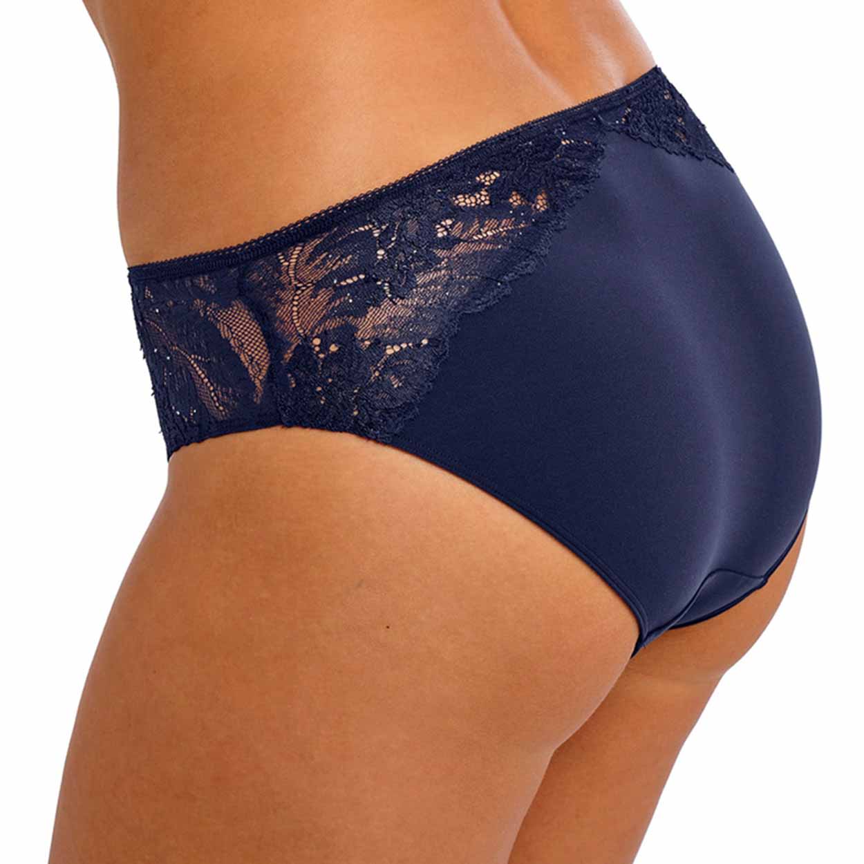 Experience unparalleled comfort in this Most Divine mid-rise brief, featuring stretch lace panels adorned with delicate viscose yarn flower detailing at the sides, both front and back. Crafted with soft stretch microfibre for ease of wear, this design offers medium back coverage, a narrow delicate mesh waist elastic, and concealed leg elastics for a refined finish, complete with a subtle diamanté charm at the center front waist.