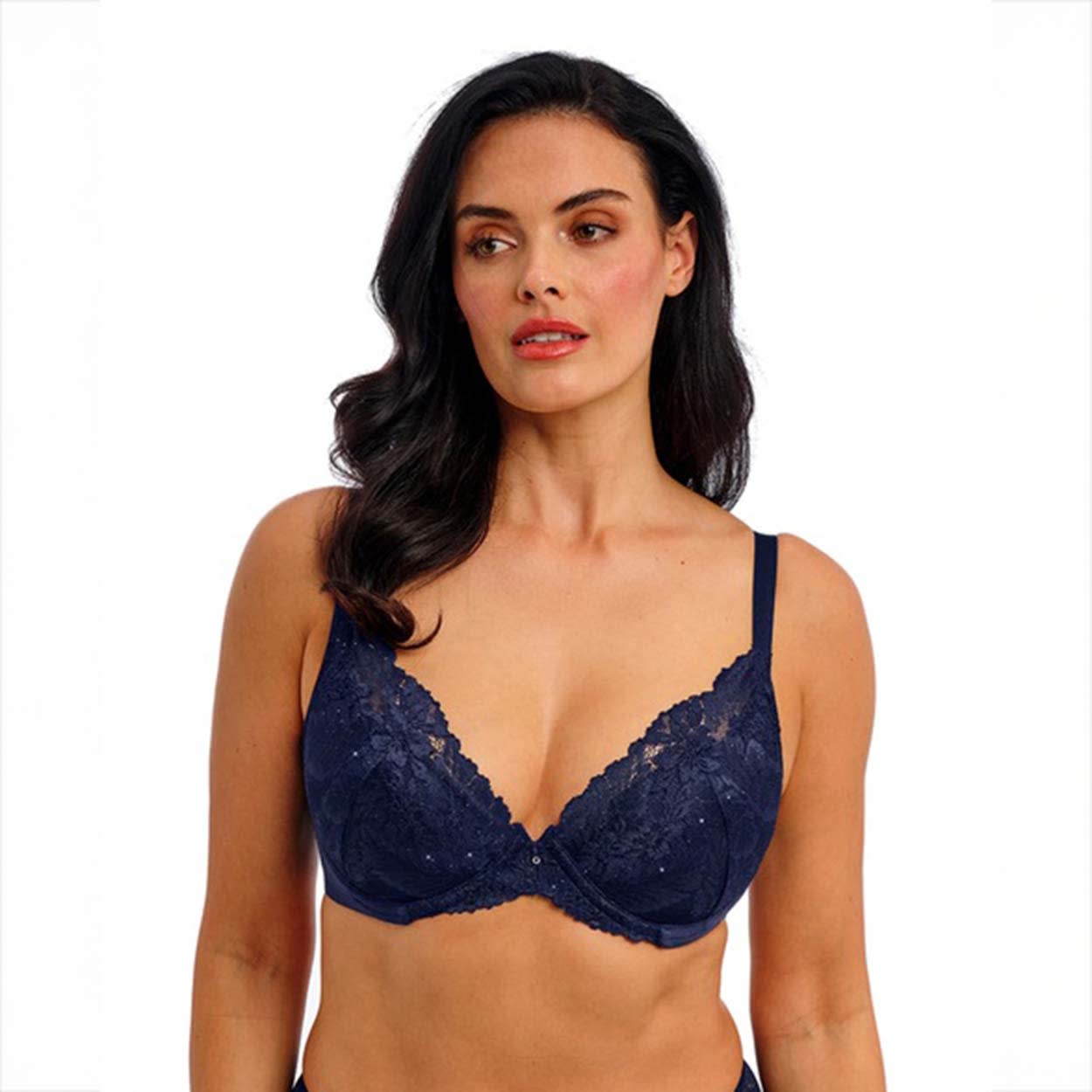 Experience exquisite lift and allure with the Most Divine Plunge Bra. Crafted with stretch lace cups featuring beautiful viscose yarn flower accents and a high apex lace outer cup, this bra offers a flattering plunging neckline. Ultra-soft graduated foam mould cups enhance your shape, while lace and V styling detail the centre front. Enjoy all-day comfort and support from the microfibre bagged-out wings, adjustable satin-look straps, and a soft-touch closure, finished with a sparkling diamanté charm