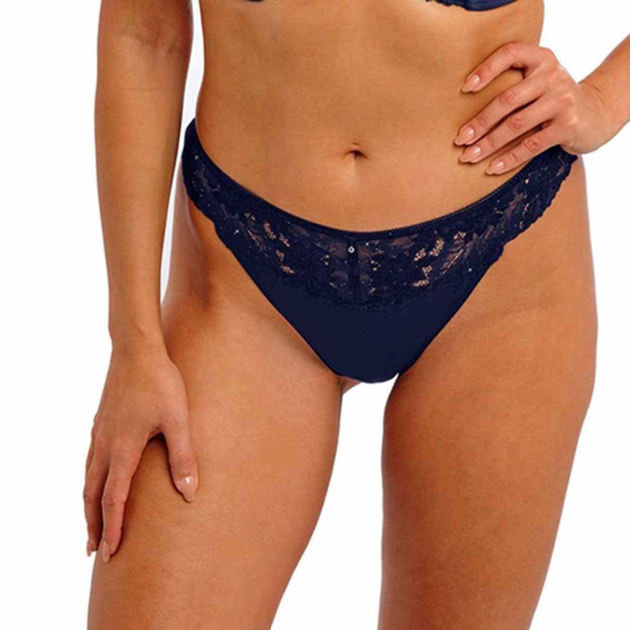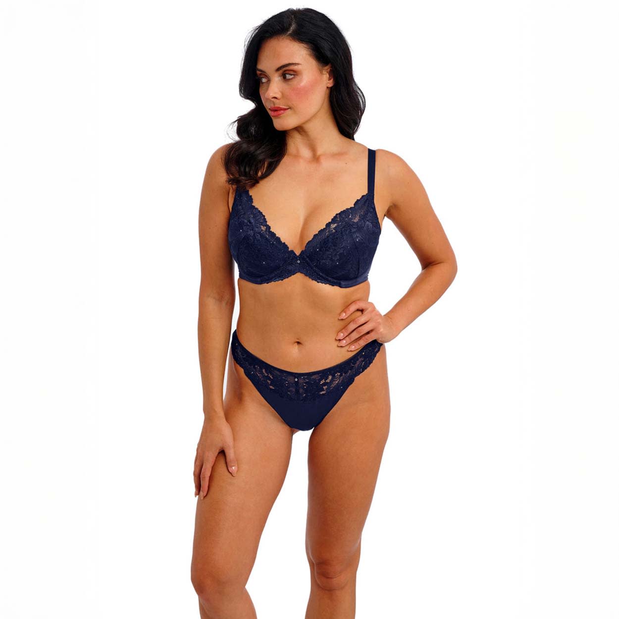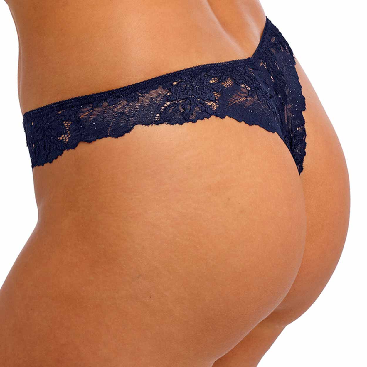 Embrace a barely-there sensation with the Most Divine Tanga, crafted with a low-rise waist and minimal back coverage. Stretch lace front inserts with intricate viscose yarn flower accents meet soft stretch microfibre for comfortable modesty. The all-stretch lace back features a delicate scallop edge, complemented by a narrow mesh waist elastic, concealed leg elastics for a smooth finish, and a sparkling diamanté charm at the center front.