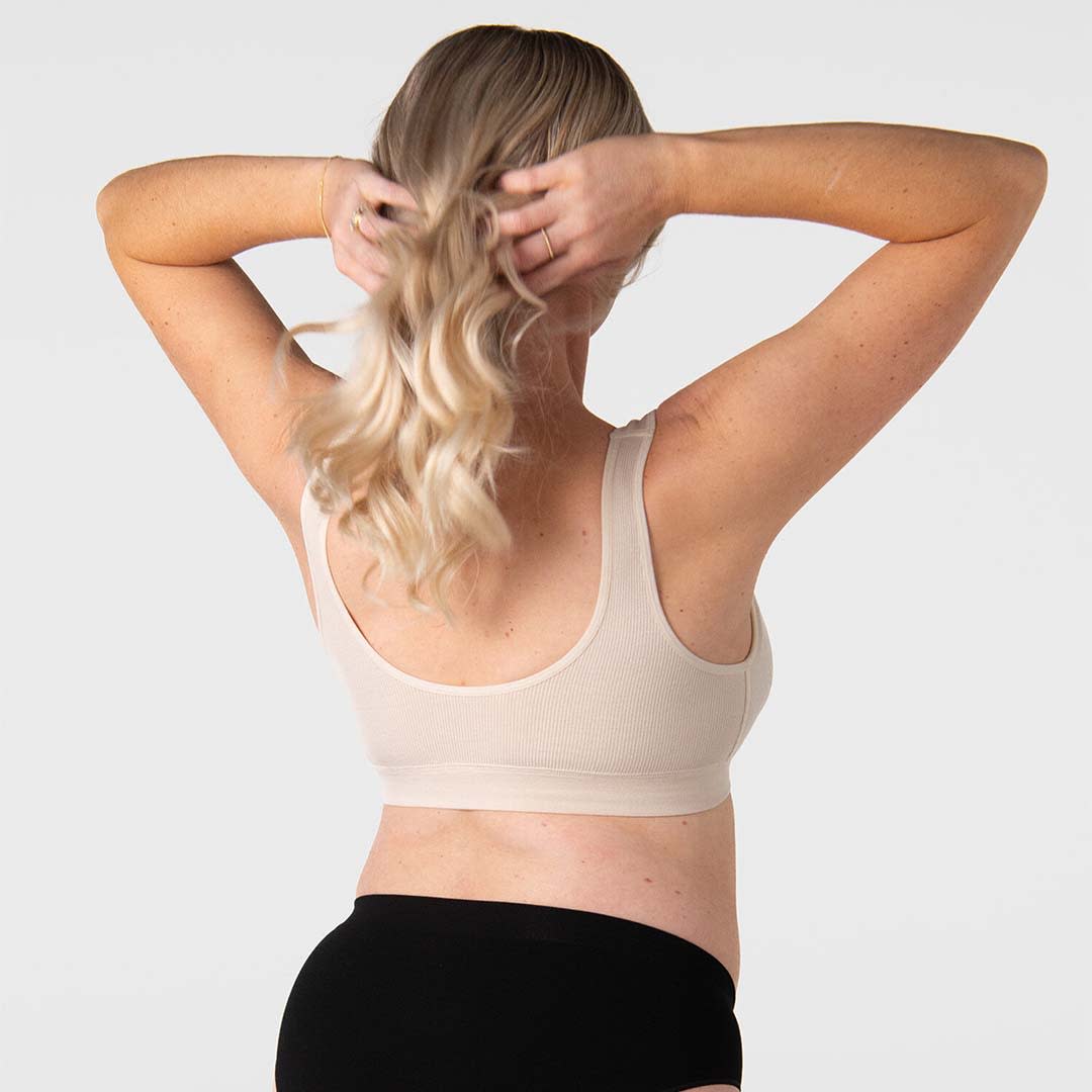 My Comfort Bra is the wire-free maternity bra she’ll live in—through pregnancy, breastfeeding, and beyond. Crafted from a soft, breathable bamboo-blend rib, it provides seamless comfort that gently adapts to her changing shape. Pull-aside, clip-free nursing access makes breastfeeding effortless, while the wide scoop back keeps everything smooth and lightly supported. Designed with a plunge, unpadded cup and wide smoothing straps in a pullover style, it offers light everyday support with easy side-access nursing. Cold wash to keep it at its best.