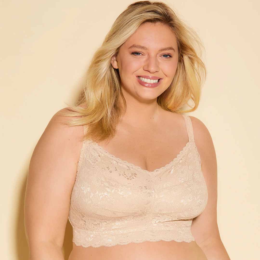 Never Say Never Curvy Bralette is a wireless bralette designed for ultra-fuller busts with smaller bands. It has soft stretch, non-sheer scalloped lace lined with power mesh for support.