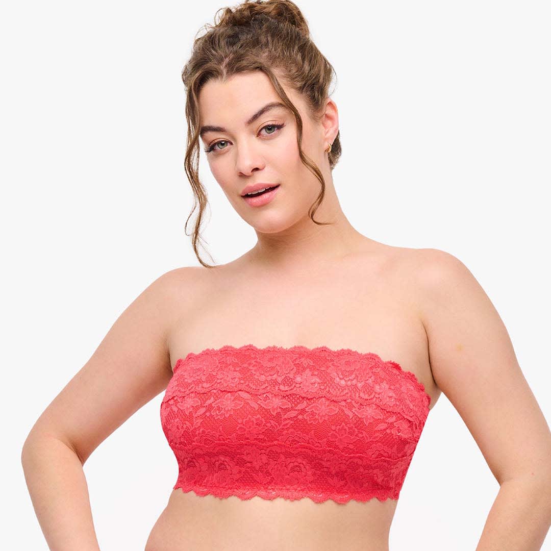 Wireless lace Never Say Never Curvy Flirtie Bandeau Bra designed for fuller busts with smaller bands.