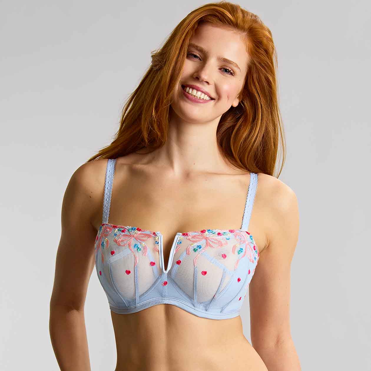 The Ottilie Balcony Bra is a stunning, true low balcony style created with a haute couture Swiss embroidery house, ensuring beautiful blooms blossom across your body in this showstopper designed for fuller busts. It ensures maximum uplift and a full shape using a cleverly engineered 3-piece inner cup and foam sling for support and projection, while a new low balcony shape outer sits independent of this concealed plunge inner cup. An expertly positioned V-wire center front frames your curves, and the rigid Swiss floral embroidery, combined with a fabric-bound underband and opulent gold hook and eye hardware, makes Ottilie a luxurious work of art that doesn't compromise on support.