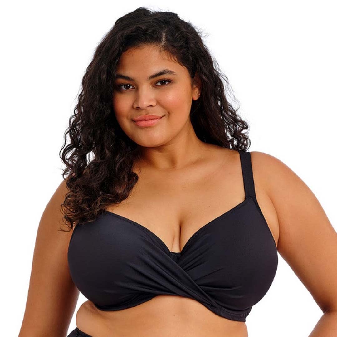 Inspired by the Plain Sailing ES7284 Plunge Bikini Top, the Plain Sailing Wrap Plunge Bikini Top features a stretch powernet inner top cup with a wrap-front outer layer for comfort and ease of fit. It is fully lined with a light yet supportive inner bra structure, giving a true bikini look with the reliable fit of an Elomi lingerie bra.
