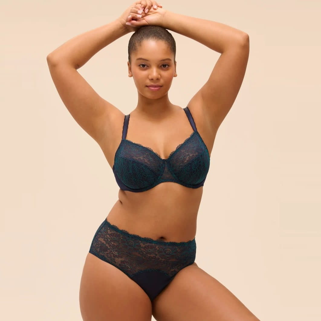 A little vintage Parisian style, a lot of poetry. The Poème Brief flatters with a higher rise and lined microfiber that smooths and defines. Finished with two-tone floral lace and scalloped trim for a romantic touch.