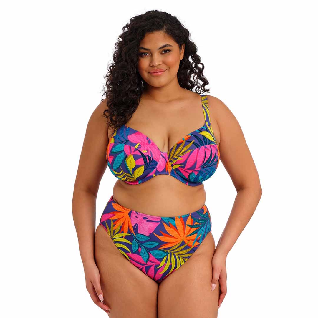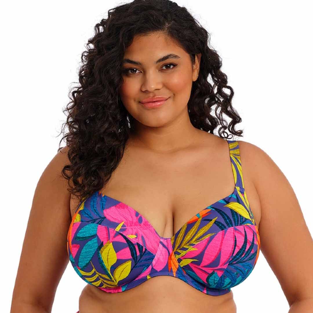 The neckline of Porto Rafti Plunge Bikini Top features concealed elastic for improved ease of fit and comfort. Fully lined with a light yet supportive fabric, this style offers a bikini look with the trusted fit of an Elomi lingerie bra. The cups, straps and back are crafted from a lightweight printed fabric with LYCRA® XTRA LIFE™ elastane for enhanced durability and shape retention. A powernet back lining provides extra support, while adjustable shoulder straps allow for a customised fit.