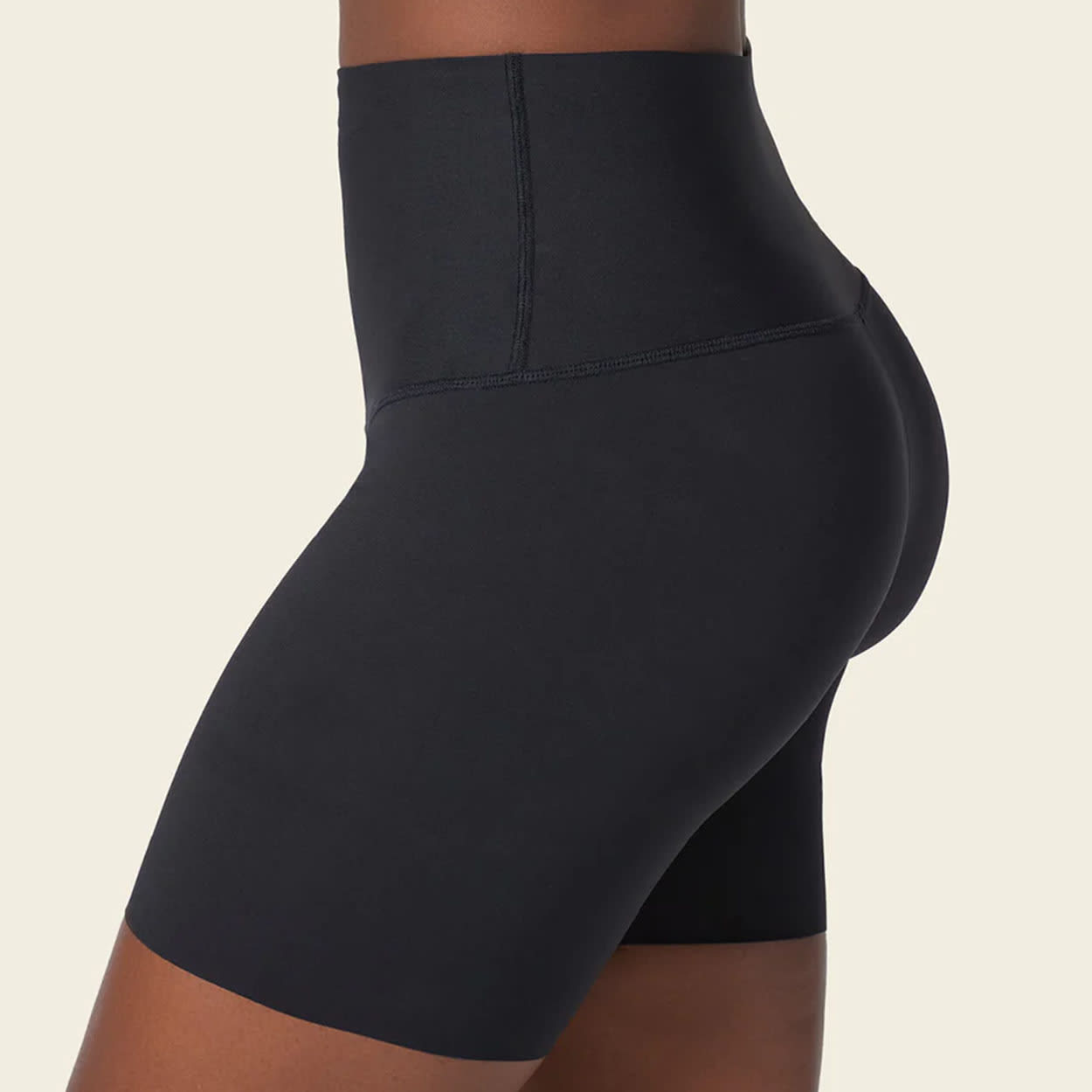 The PowerShorts Tummy Control & Anti-Chafe Short is a shapewear essential designed for both sculpting and comfort. Made from a soft compression fabric, it features a double-layered waistband for firm mid-to-lower tummy control, providing a sleek look under your clothes. The mid-thigh length and flat seams help to alleviate thigh chafe, making it perfect for all-day wear. The fabric is breathable, moisture-wicking, and quick-drying to keep you cool and dry. A non-slip waistband ensures it stays in place, and it also helps to hide cellulite.