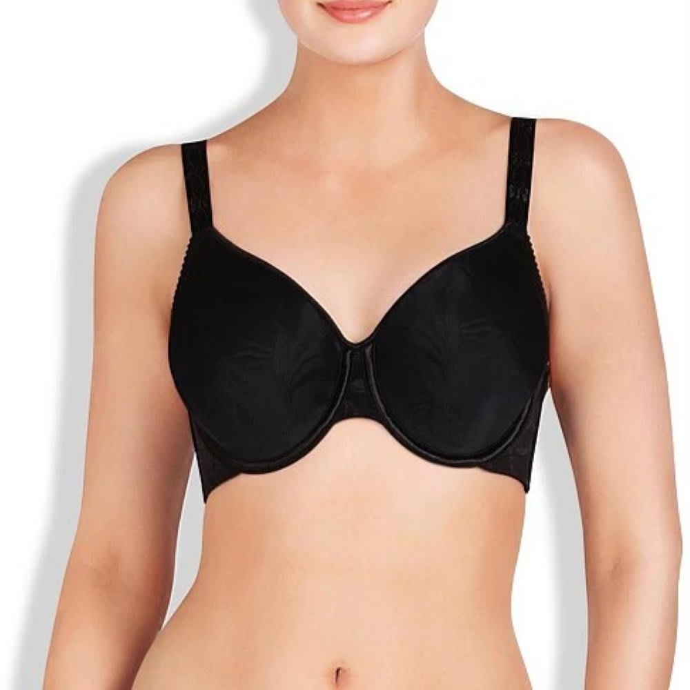Featuring 2 way stretch jacquard fabric moulded cup for support and modesty in a contoured bra. Hidden cotton side panel for added support, non stretch shoulder straps to restrict movement, with elastic adjustment at the back. Non-Returnable.