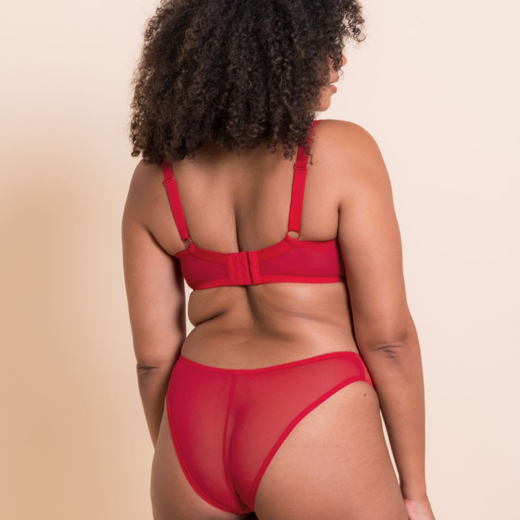 Dive into our deep plunge, gorgeously embroidered masterpiece. Adorned with playful lips motif scattered across delicate embroidery.