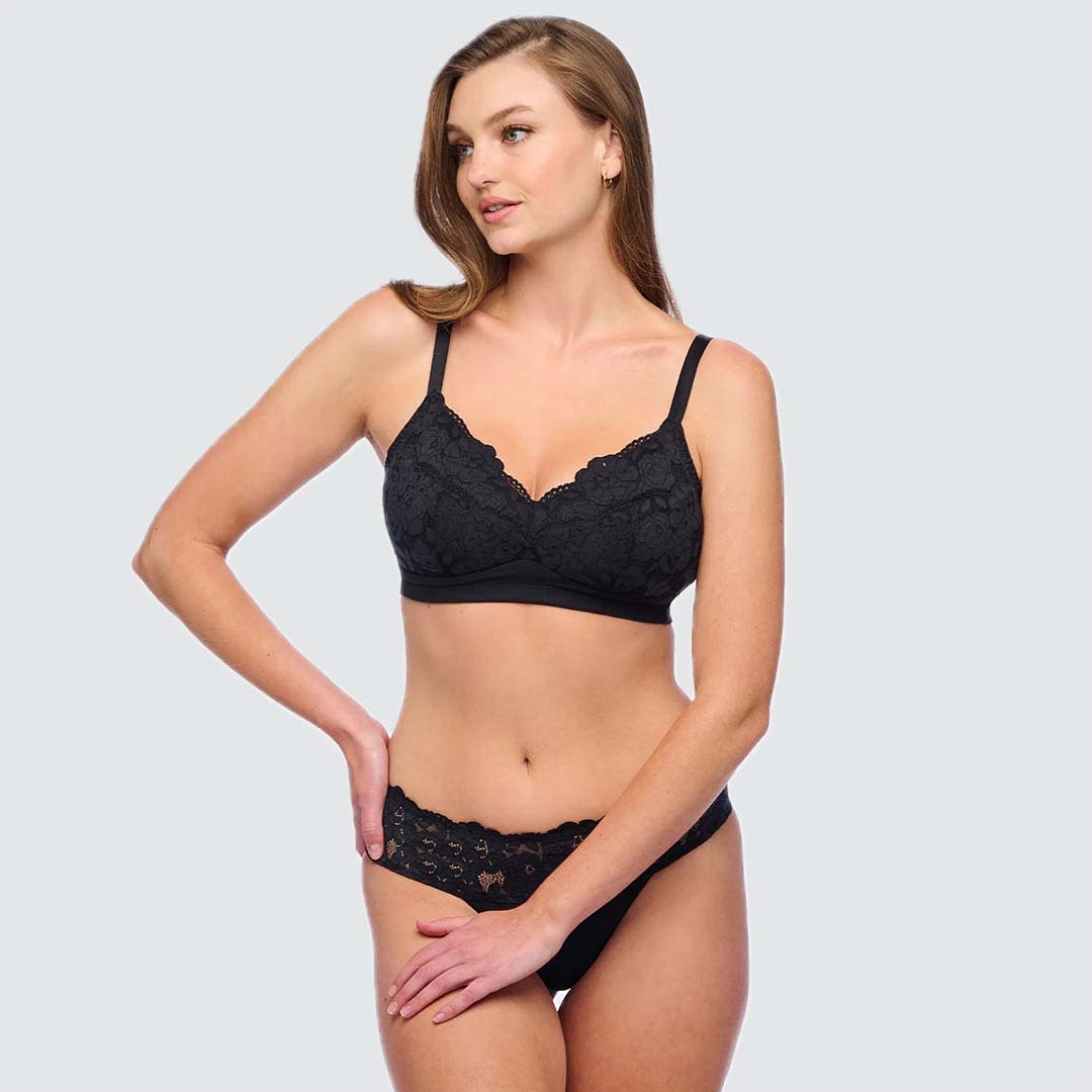 Romanza Curvy Bralette is a wireless triangle bralette designed to support fuller busts with smaller bands. Crafted with a soft cotton underband for all-day comfort, it features adjustable straps and a hook-and-eye back closure. Hand wash only and avoid tumble drying to preserve its shape and softness.