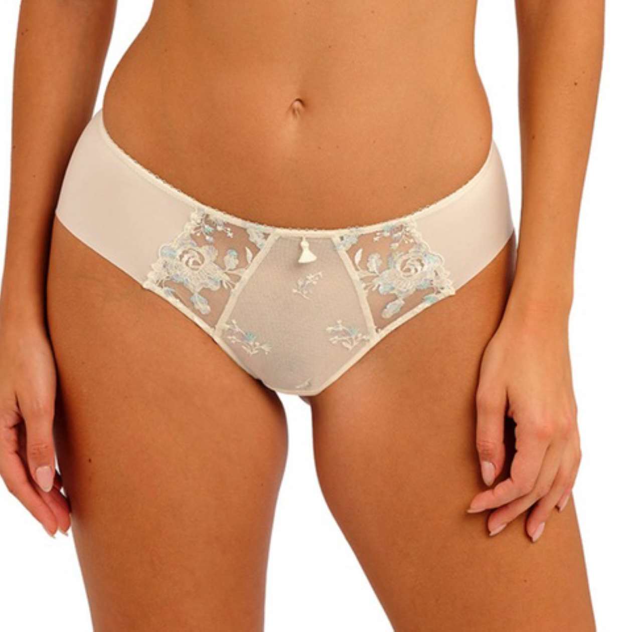 The Rose Enchante Brief offers a refined balance of romantic detail and everyday comfort. Designed with a mid-rise waist and medium back coverage, it features a beautiful embroidered front panel (lined for modesty) and delicate scalloped embroidery at the side panels. For a truly seamless feel, the soft stretch micro fabric back wraps around to the front, eliminating side seams, while free-cut back legs ensure a minimal visible panty line. This elegant piece is finished with decorative picot elastic and the collection’s signature tassel detail at the center front.
