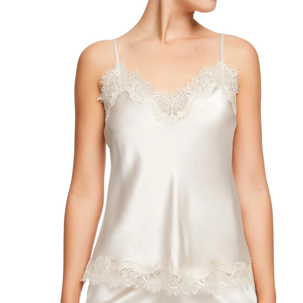 The Scarlett Cami is too beautiful to hide so wear it to be seen! A beautiful, silk camisole with detailed eyelash lace trim at the neck, along the back and around the hem. Perfect for layering underneath jackets and sheer shirts or wear as a camisole top.