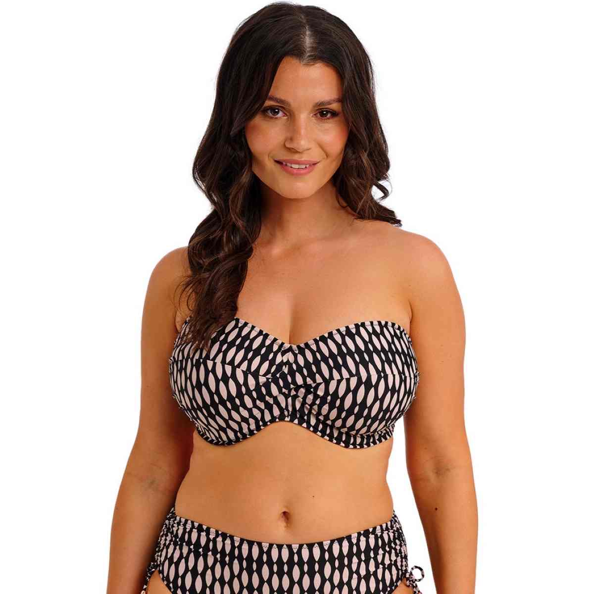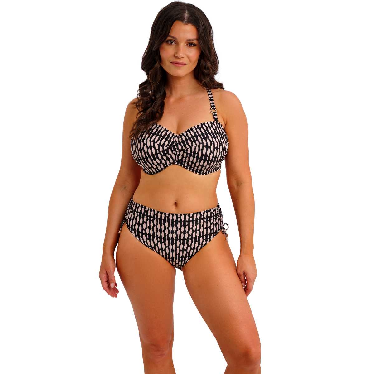 Feel supported and sun-ready with Shell Bay, a chic swimwear piece featuring a striking graphic design in a black and muted blush colourway for an elevated poolside look. Thoughtful details complete the collection, including hammered-effect gold ring accents on the straps that won’t heat up in the sun. The lightly padded foam cups provide support and a smooth, rounded shape, while the twist front creates a flattering sweetheart neckline. Concealed underwire and powernet-lined wings offer additional support and anchorage, and detachable scarf tie straps add versatility and style. Perfect for swimwear that feels as good as it looks.